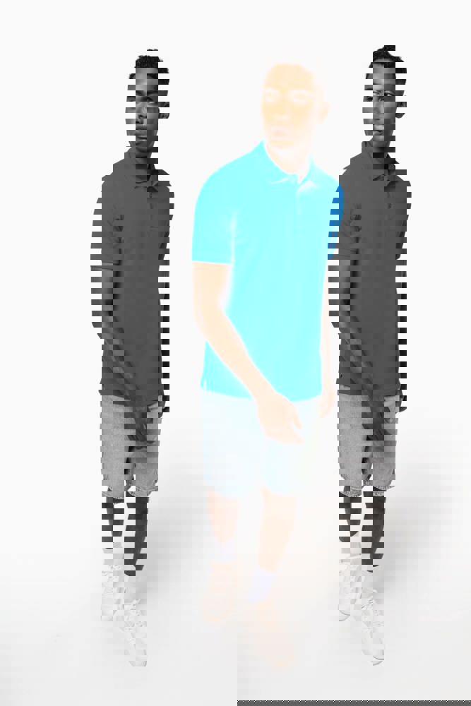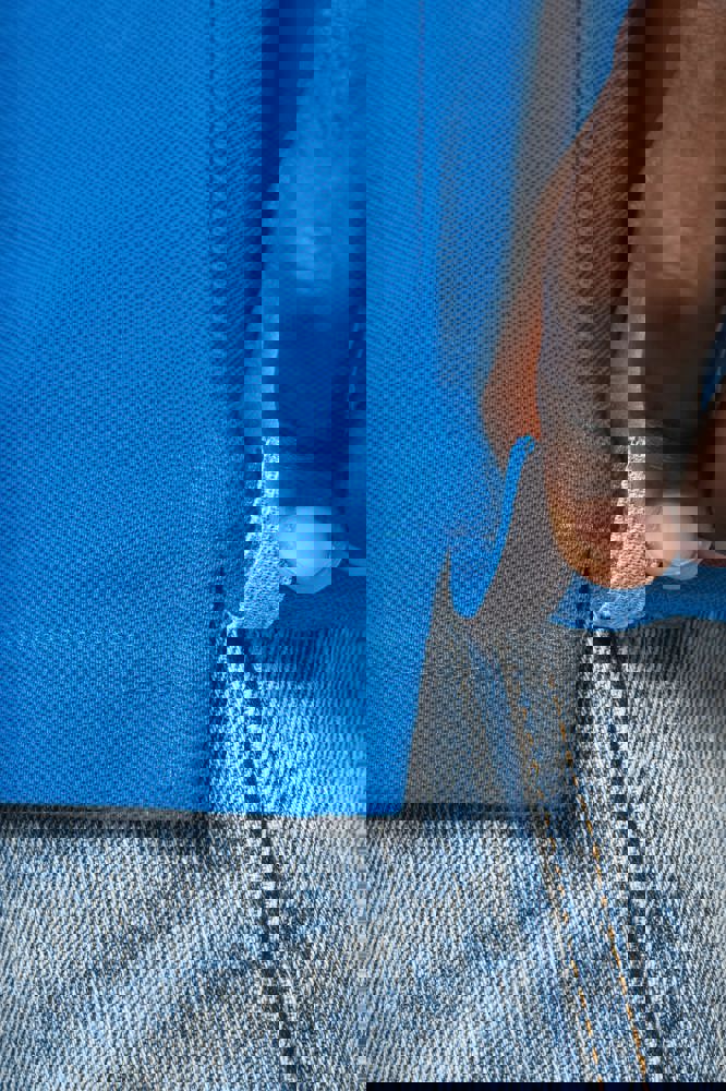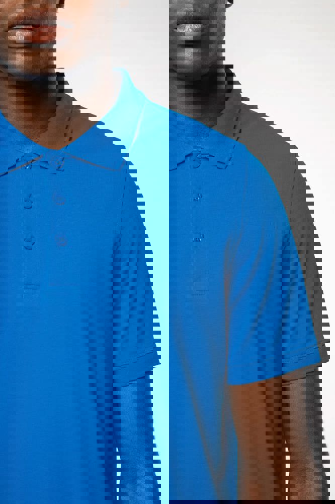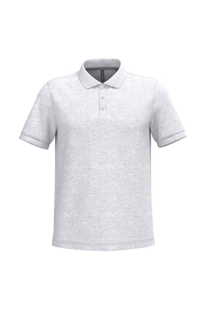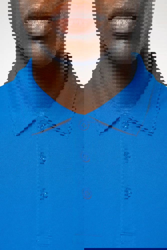 100% gekamd katoen - wasbaar op 60°C (Oxford Grey : 90% katoen / 10% viscose - wasbaar op 40°C). Piqué. Kraag in rib. Nektape en zijsplitjes in Oxford Grey voor alle kleuren behalve Oxford Grey daarvan zijn ze Dark Grey. Knooplijst met 3 knopen. Afwerking met dubbele stiksels aan de onderkant. Mouwuiteinden in rib.