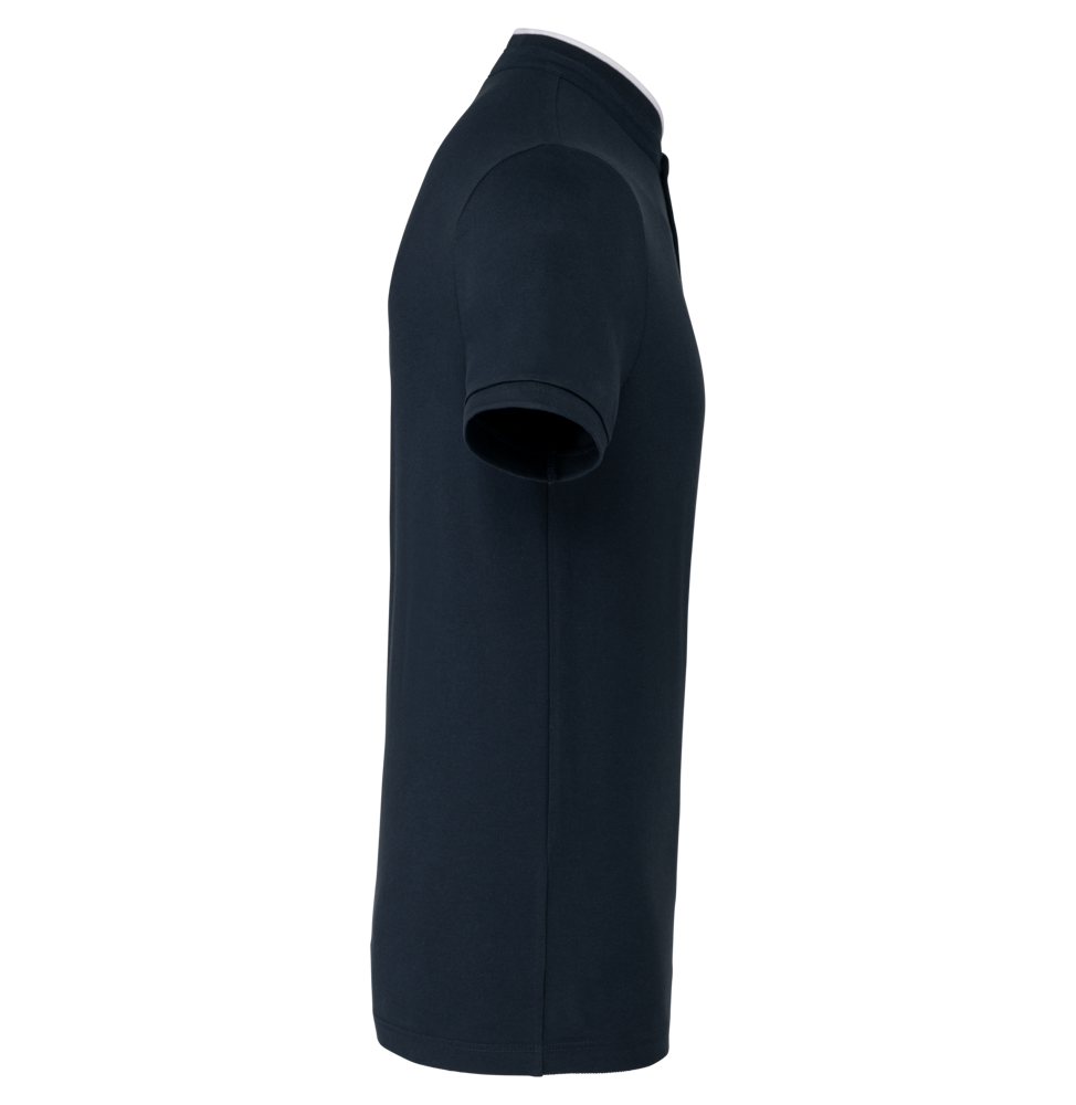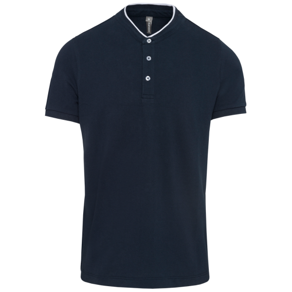 100% katoen. (90% katoen / 10% viscose voor chiné kleur). Katoenen, gekamd piquétricot. Wasbaar op 60 °C (40 °C voor chiné kleur) Kraag in maostijl in ribboord met contrasterende bies. Knooplijst met 3 contrasterende knopen. Ribboord aan mouwuiteinden. Dubbel stiksel aan de onderkant.