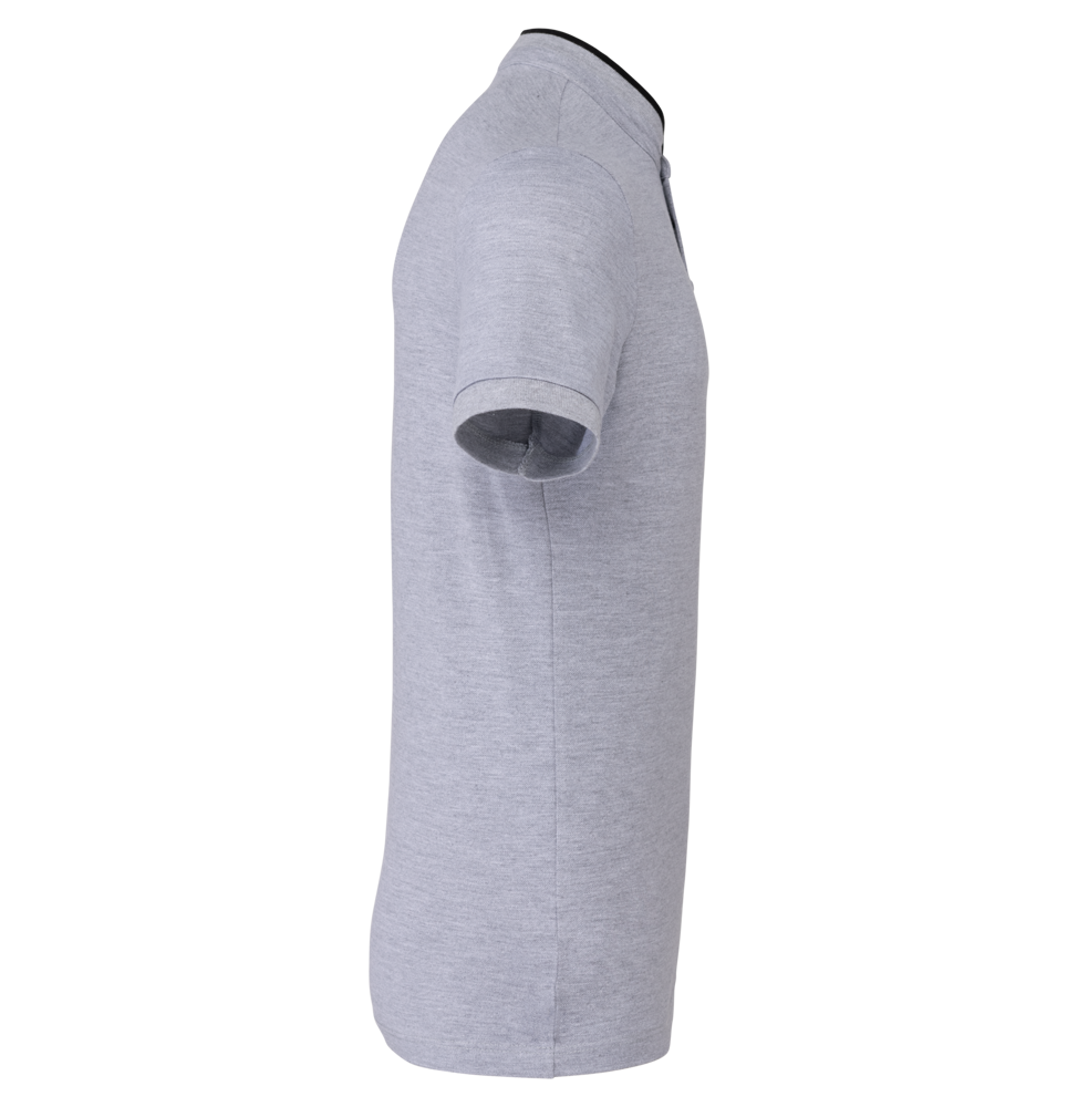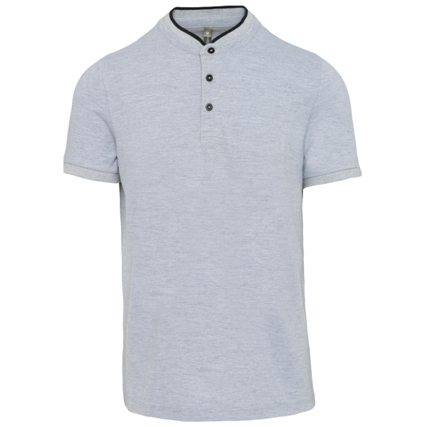 100% katoen. (90% katoen / 10% viscose voor chiné kleur). Katoenen, gekamd piquétricot. Wasbaar op 60 °C (40 °C voor chiné kleur) Kraag in maostijl in ribboord met contrasterende bies. Knooplijst met 3 contrasterende knopen. Ribboord aan mouwuiteinden. Dubbel stiksel aan de onderkant.
