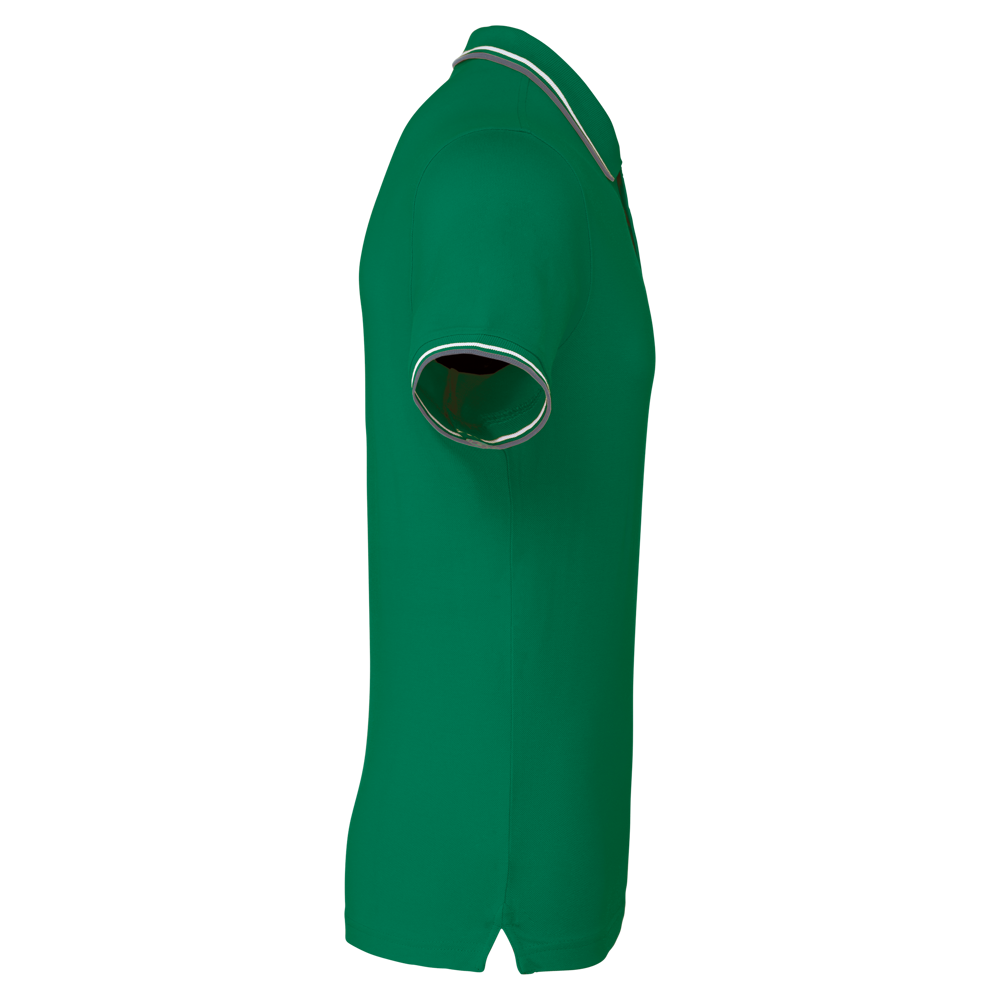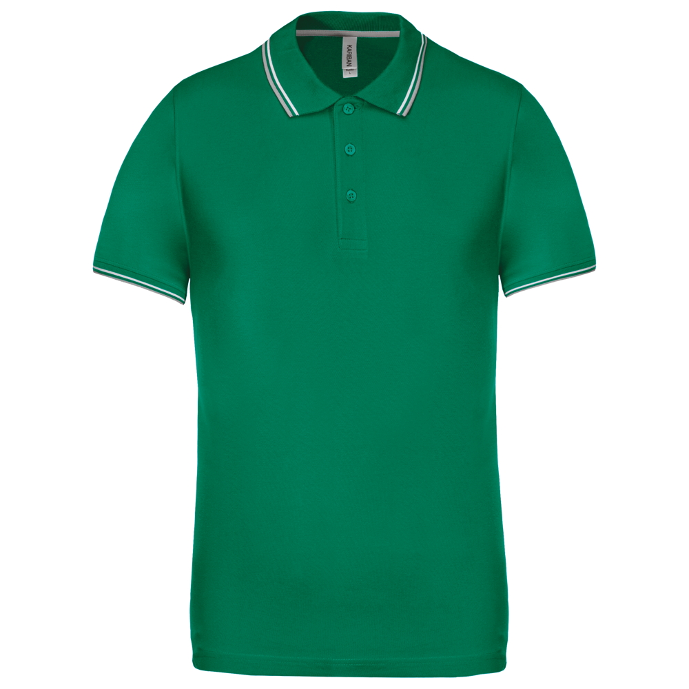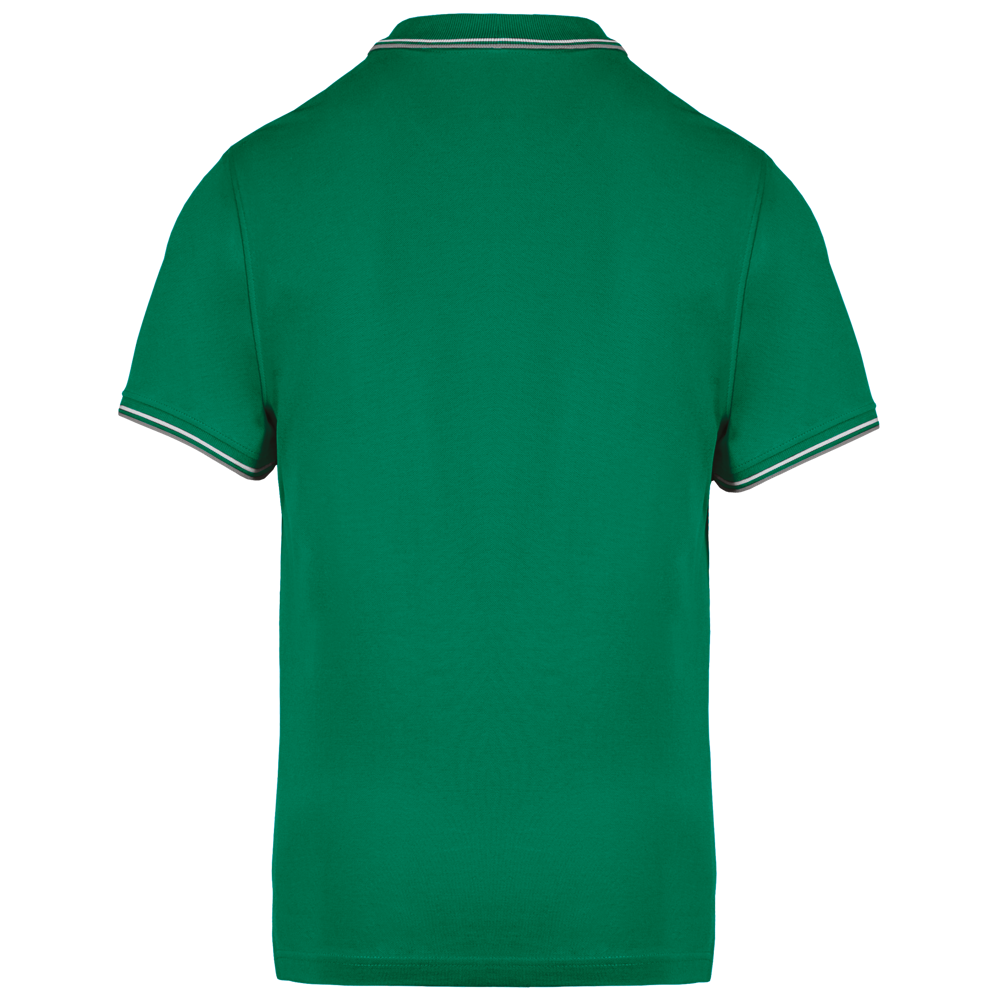 100% katoen piqué. Knooplijst met 3 knopen. Nektape en zijsplitjes in contrastkleur. Afwerking in rib met gecontrasteerde rand aan de kraag en mouwuiteinden. Afgewerkt met dubbele stiksels onderaan.