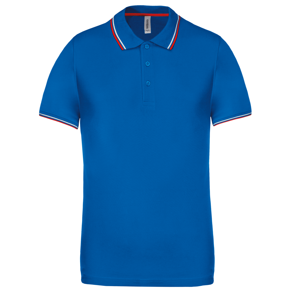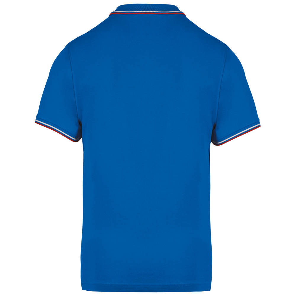 100% katoen piqué. Knooplijst met 3 knopen. Nektape en zijsplitjes in contrastkleur. Afwerking in rib met gecontrasteerde rand aan de kraag en mouwuiteinden. Afgewerkt met dubbele stiksels onderaan.