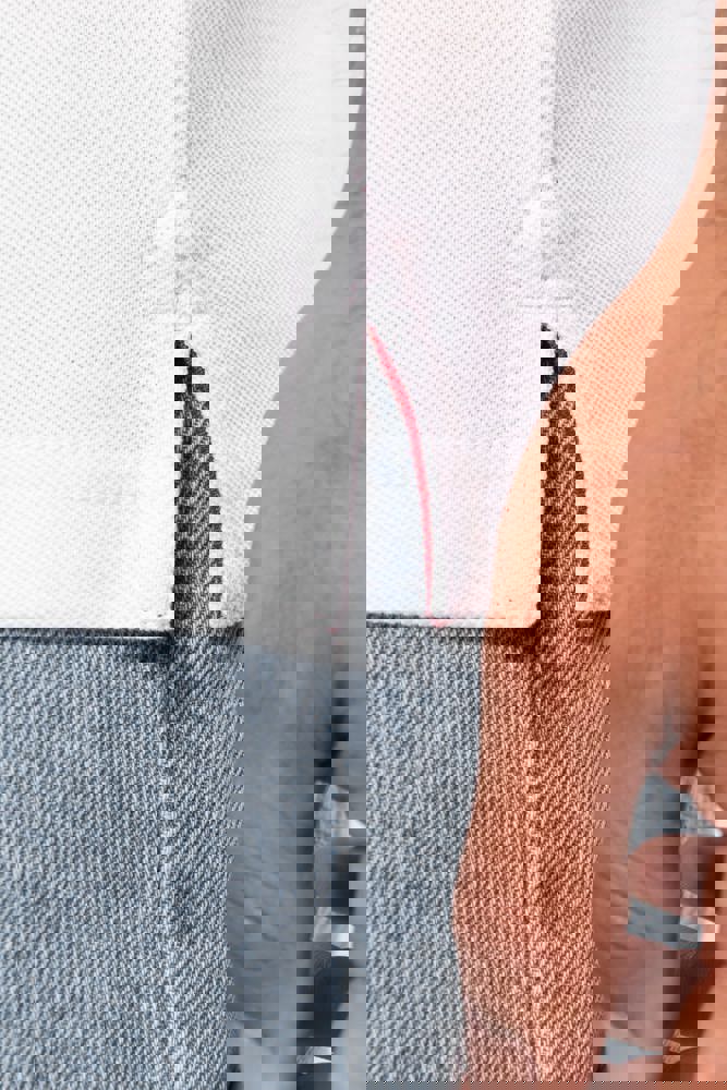 100% katoen piqué. Knooplijst met 3 knopen. Nektape en zijsplitjes in contrastkleur. Afwerking in...meer