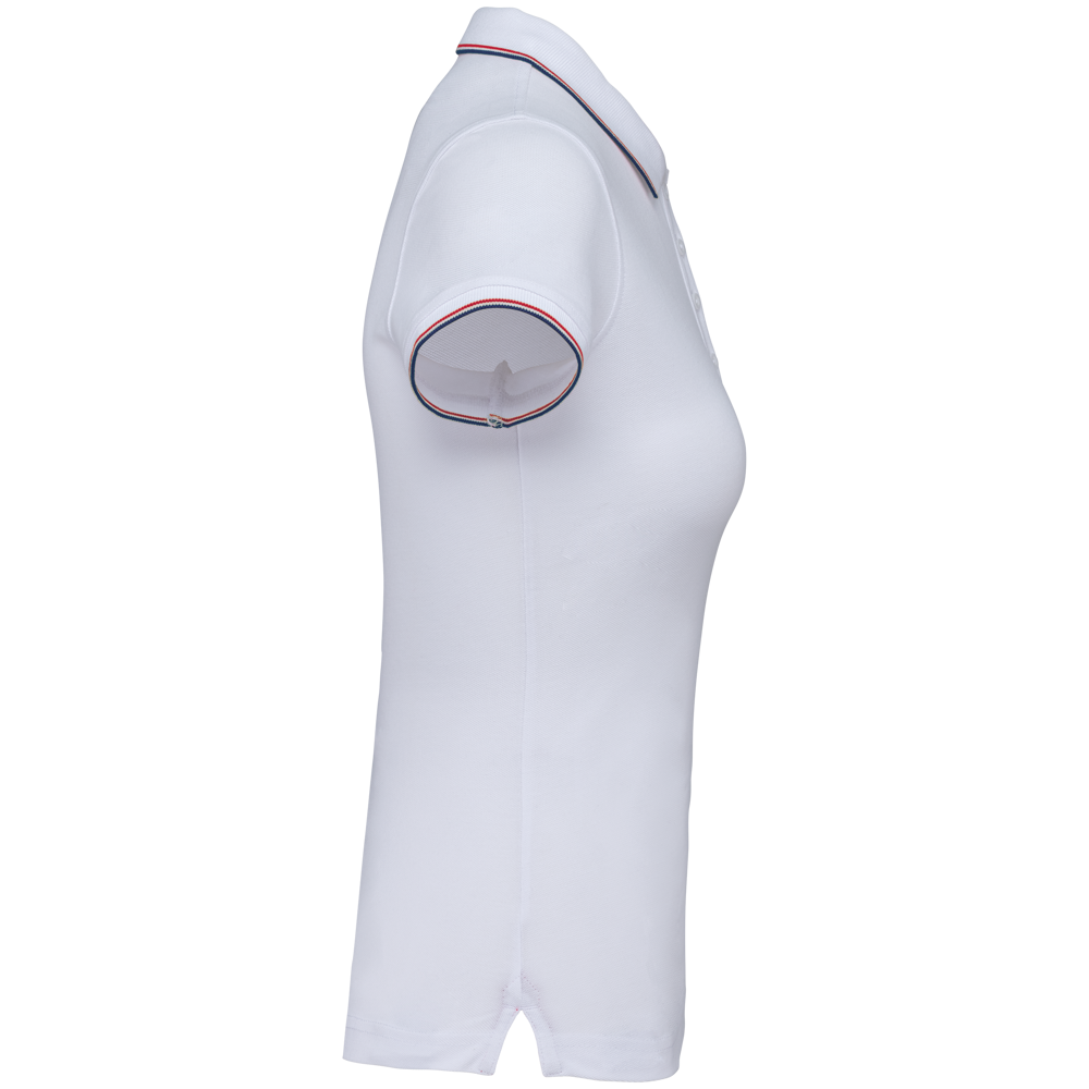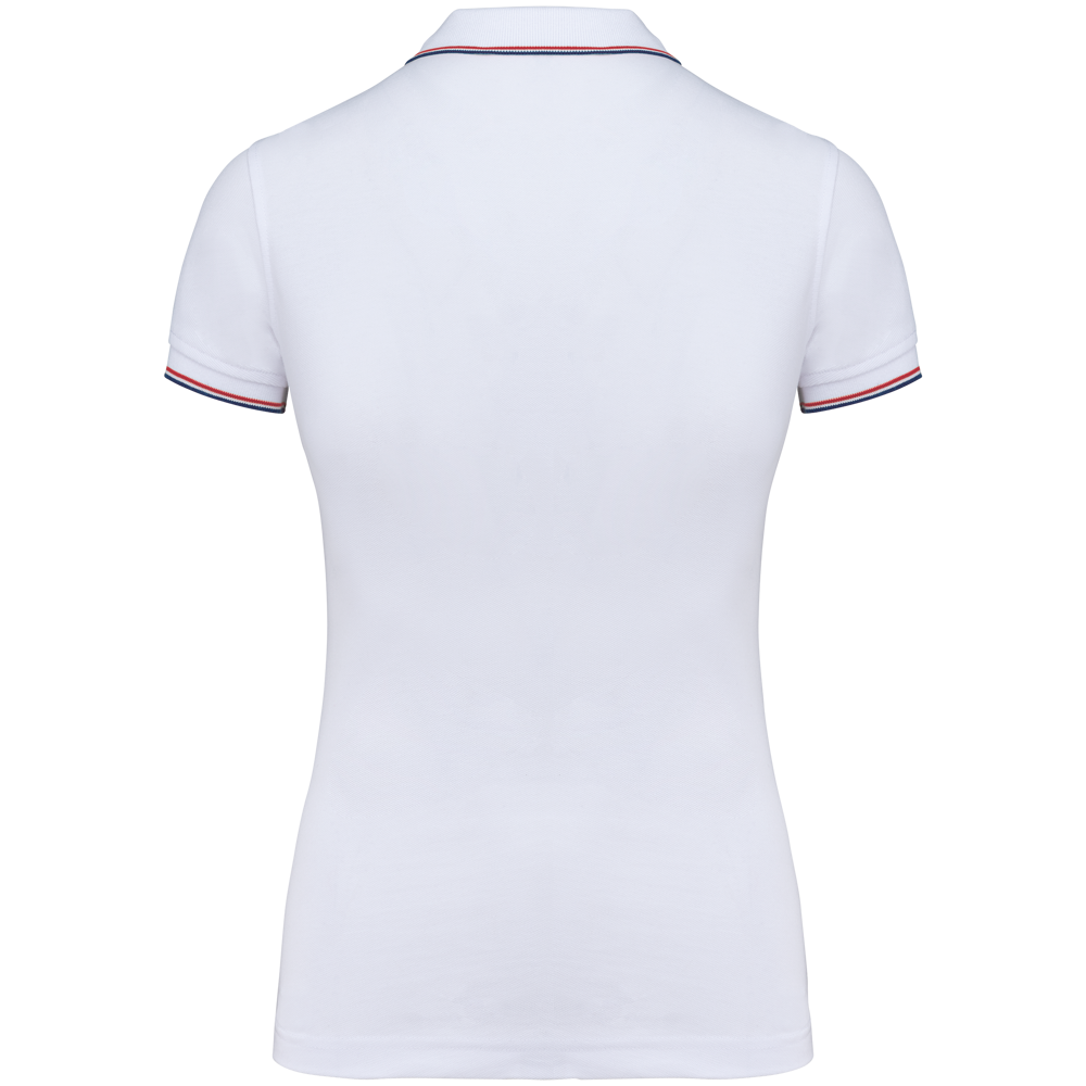 100% katoen piqué. Knooplijst met 5 knopen. Nektape en zijsplitjes in contrastkleur. Afwerking in rib met gecontrasteerde rand aan de kraag en mouwuiteinden. Afgewerkt met dubbele stiksels onderaan.