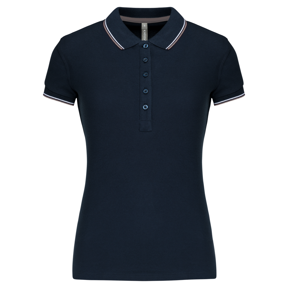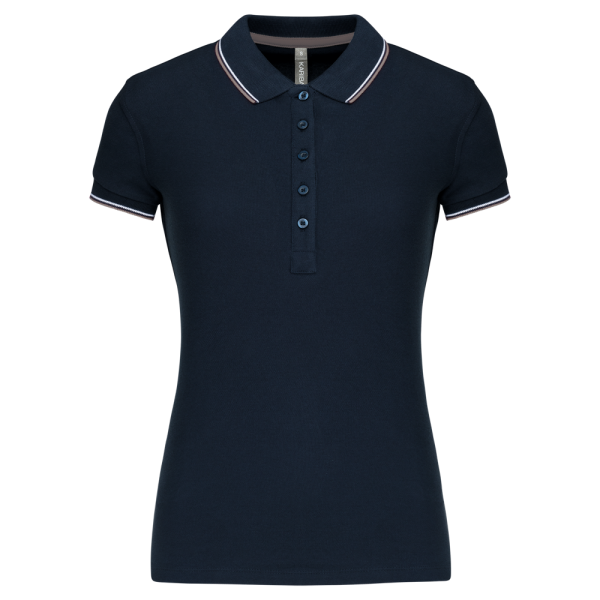 100% katoen piqué. Knooplijst met 5 knopen. Nektape en zijsplitjes in contrastkleur. Afwerking in rib met gecontrasteerde rand aan de kraag en mouwuiteinden. Afgewerkt met dubbele stiksels onderaan.