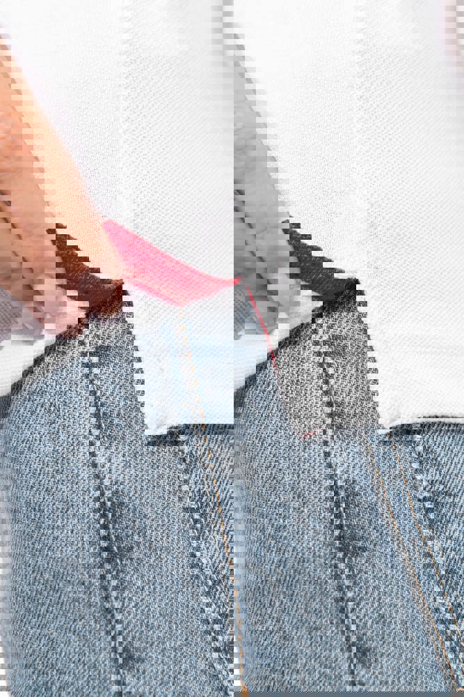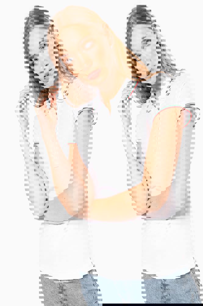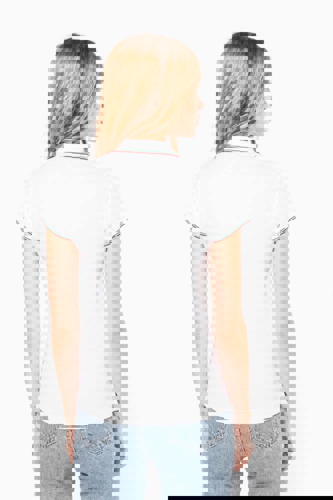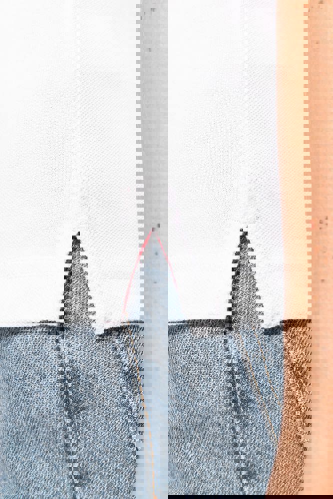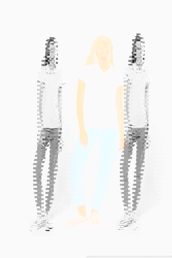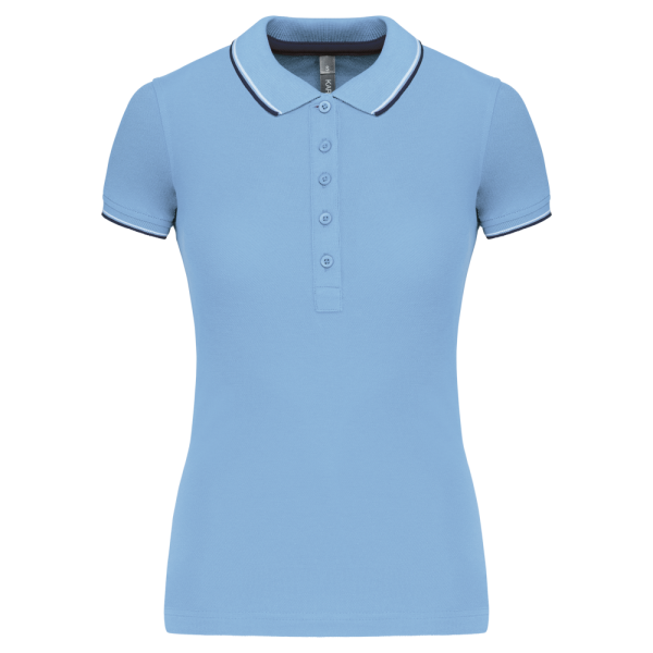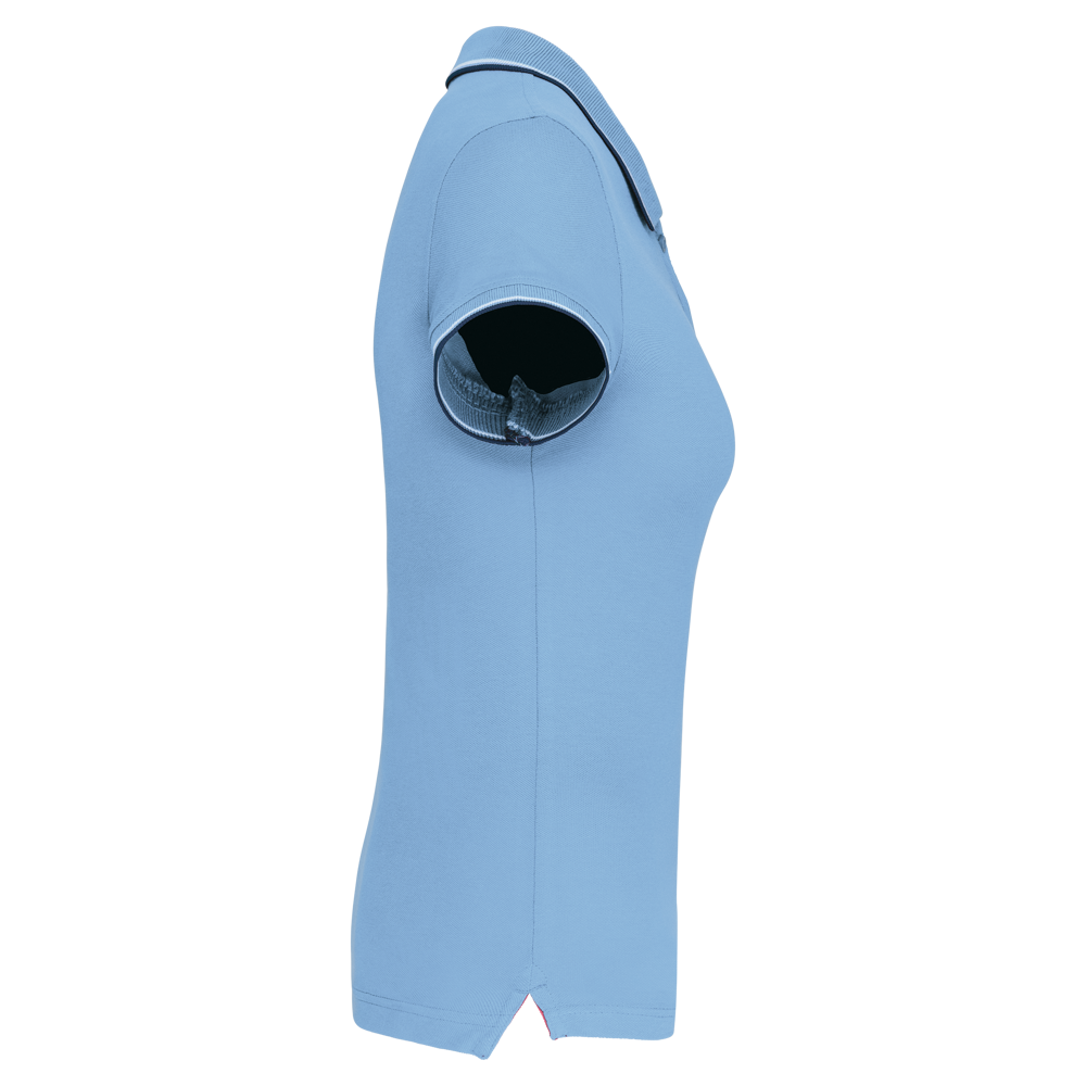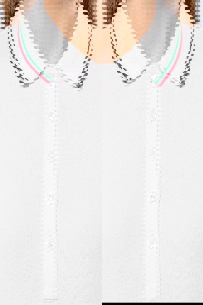 100% katoen piqué. Knooplijst met 5 knopen. Nektape en zijsplitjes in contrastkleur. Afwerking in rib met gecontrasteerde rand aan de kraag en mouwuiteinden. Afgewerkt met dubbele stiksels onderaan.