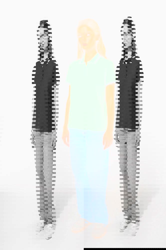 K273 - Damespolo met korte mouwen en contrasterende bies