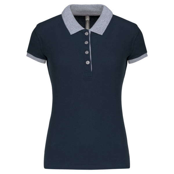 100% voorgekrompen katoen piqué (Oxford Grey: 90% katoen / 10% viscose). Contrasterende ribboord...meer
