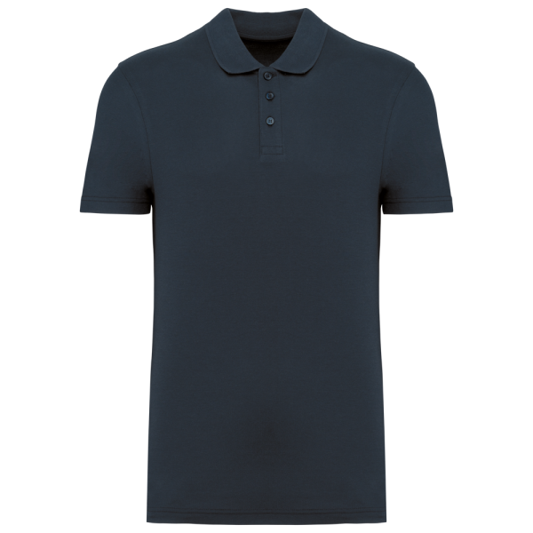 100% katoen. Oxford Grey kleurenpalet: 90% katoen / 10% viscose. Gekaard katoen. Piquétricot. Rechte snit. Zijnaden. 1x1 ribboord aan de hals. Knooplijst met 3 bijpassende knopen. Dubbel stiksel op mouwuiteinden en boord onderaan. Zijsplitten. Bijpassende nektape in de hoofdstof. Geen merklabel, enkel een afscheurbaar maatlabel voor eenvoudige personalisatie.
