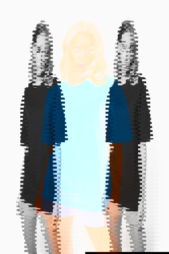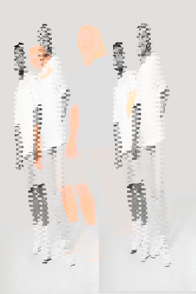 100% katoen (behalve de kleur Oxford Grey: 90% katoen en 10% viscose). Gekaard katoen. Jersey. Oversized model met afhangende schouders. Cut-and-sew-techniek. Schouderversteviging in silicone voor een betere pasvorm. Ronde hals in toon-op-toon 1x1 ribboord, afgewerkt met een enkel stiksel. Toon-op-toon nektape. De mouwuiteinden en de boord zijn afgewerkt met een enkel stiksel. Geen merklabel, maar een maatlabel in de kraag voor eenvoudige personalisatie.