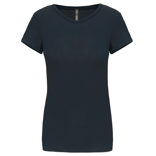 97% katoen / 3% elasthan. Chiné kleuren: 87% katoen / 9% viscose / 4% elasthan. Ronde hals. Dubbel stiksel aan mouwuiteinden en onderkant. De moderne getailleerde snit zijn volgens de laatste modetrends.