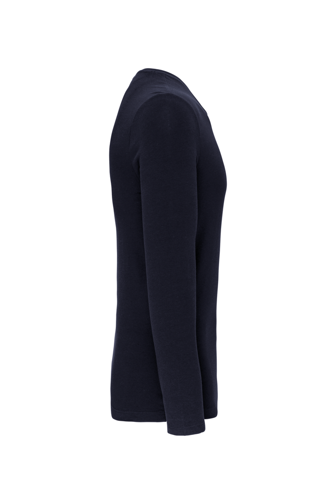 97% katoen / 3% elasthan. Chiné kleuren: 87% katoen / 9% viscose / 4% elasthan. Ronde hals. Dubbel stiksel aan mouwuiteinden en onderkant. De moderne getailleerde snit zijn volgens de laatste modetrends.