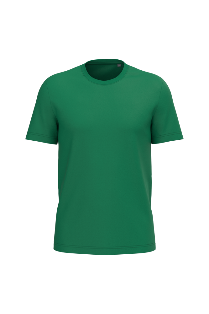 Effen kleuren : 100% katoen. Kleur Ash Heather : 98% katoen / 2% viscose. Kleur Oxford Grey : 90% katoen / 10% viscose. Kleuren Wine Heather ; French Navy Heather ; Green Marble Heather ; Cloudy Blue Heather : 80% katoen / 20% polyester. En kleur Grey Heather : 70% katoen / 30% polyester. Alle kleuren zijn gemaakt van biologisch katoen in omschakeling. Gekamd katoen. Ronde hals in ribboord met elasthan. Toon-op-toon nektape. Buisvormig. Dubbel stiksel aan mouwuiteinden en onderkant.