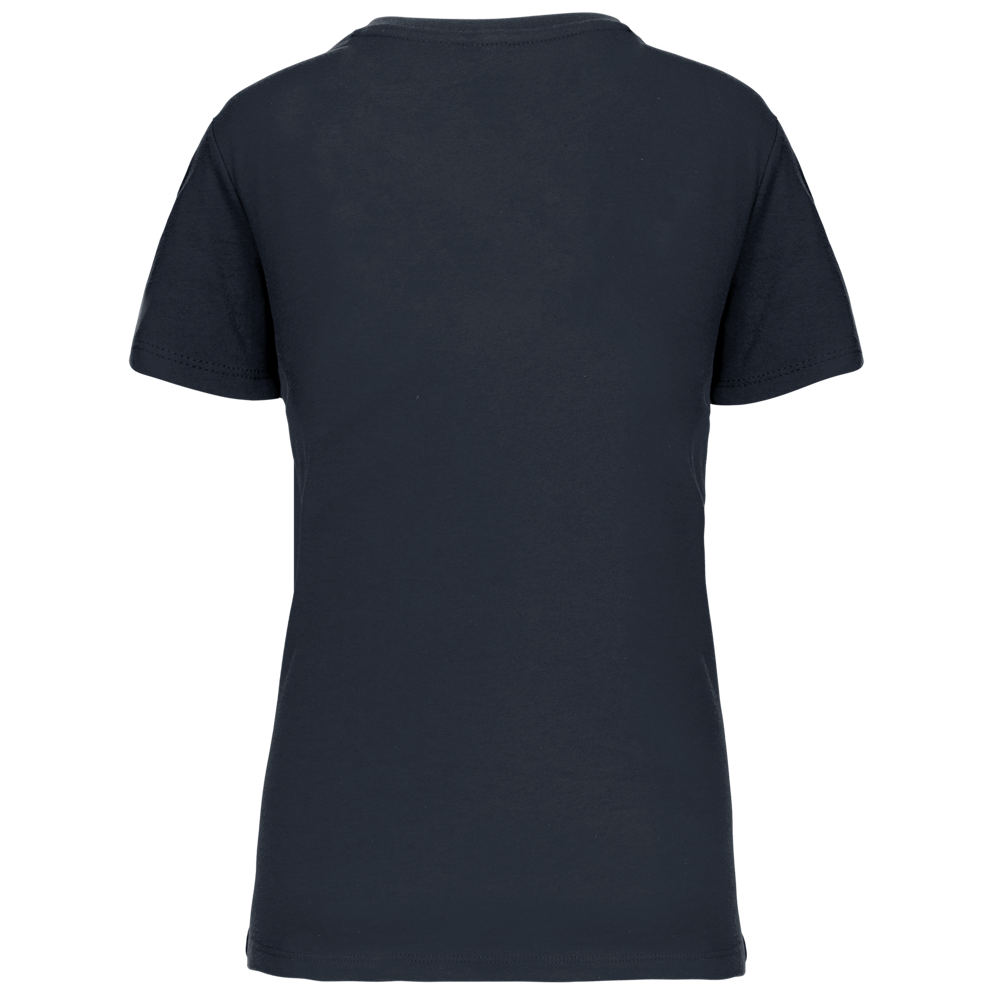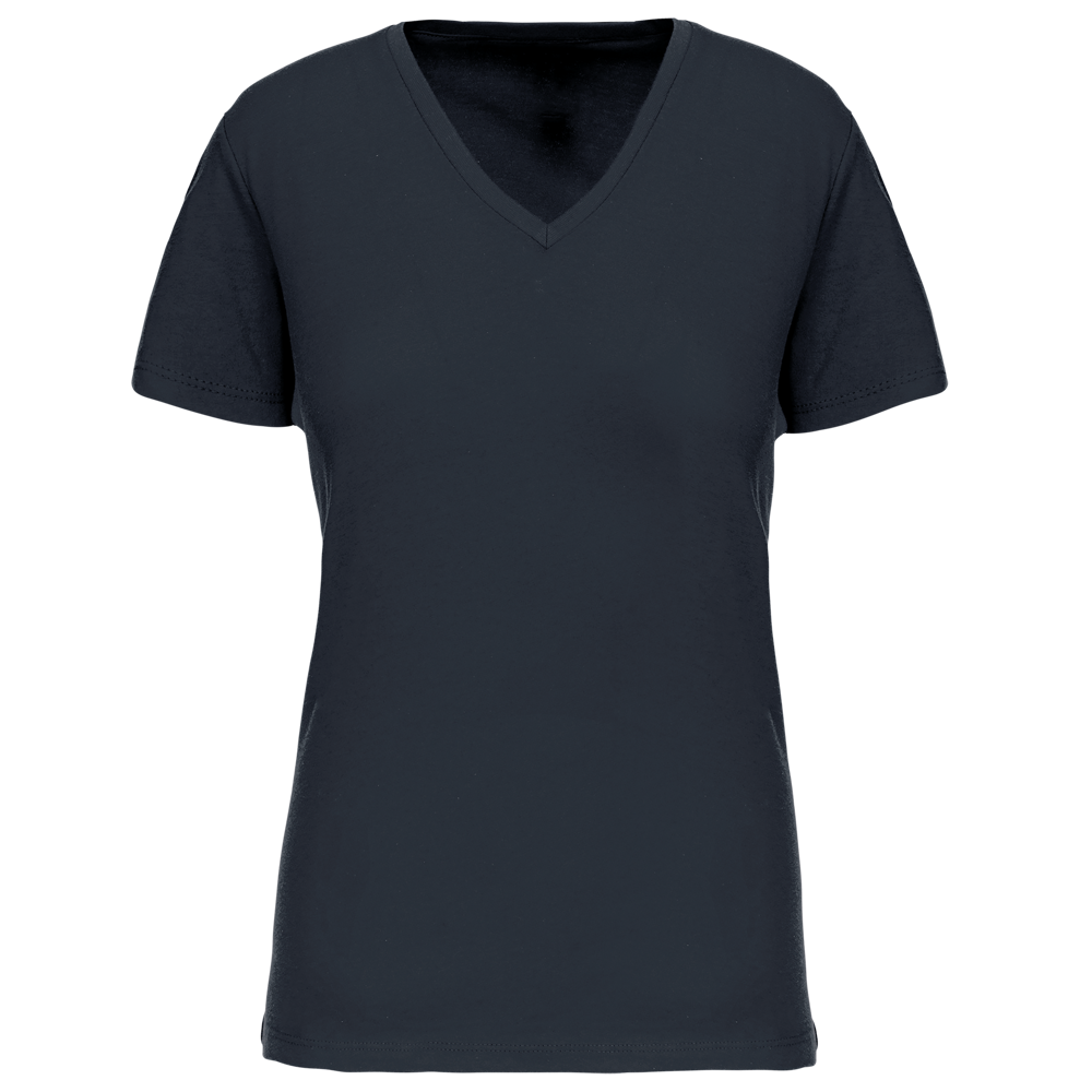Effen kleuren : 100% katoen. Kleur Ash Heather 98% katoen / 2% viscose en Oxford Grey : 90% katoen / 10% viscose. Alle kleuren zijn gemaakt van biologisch katoen. Gekamd katoen. V-hals in ribboord met elasthan. Toon op toon nektape. Dubbel stiksel aan mouwuiteinden en onderkant.