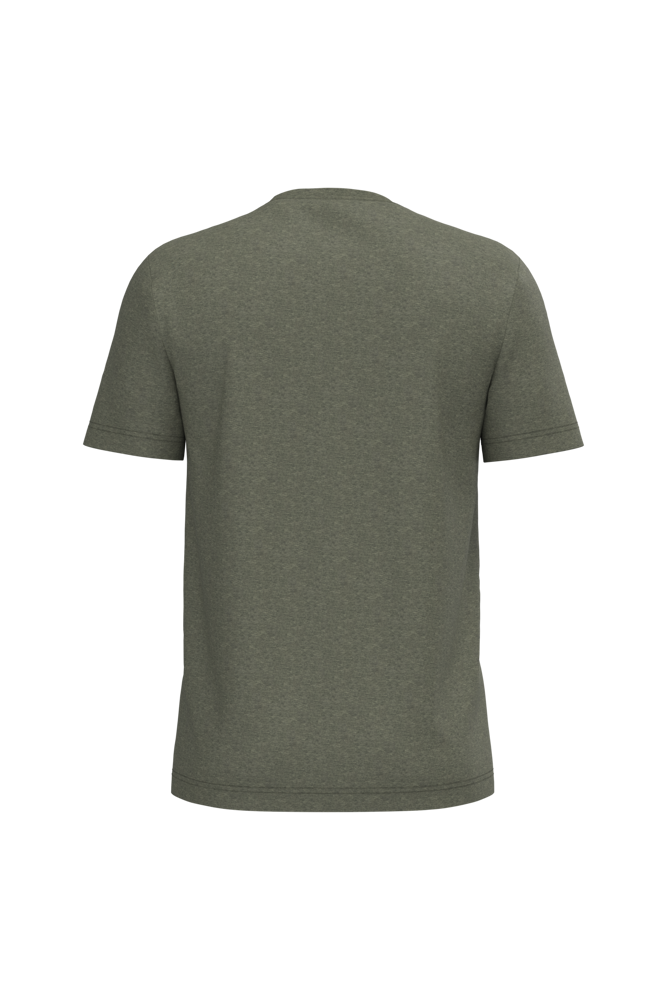 Effen kleuren : 100% katoen. Kleur Oxford Grey : 90% katoen / 10% viscose. Kleur Wine Heather, Green Marble Heather & Cloudy Blue Heather : 80% katoen / 20% polyester. lle kleuren zijn gemaakt van biologisch katoen in omschakeling. Gekamd katoen. Buisvormige snit. Rechte snit. Ronde hals in ribboord met dubbel stiksel aan weerszijden van de naad. Toon op toon nektape. Dubbel stiksel aan de mouwuiteinden en de onderkant. Geen merklabel in de kraag, maar enkel een maatlabel voor eenvoudige personalisatie.