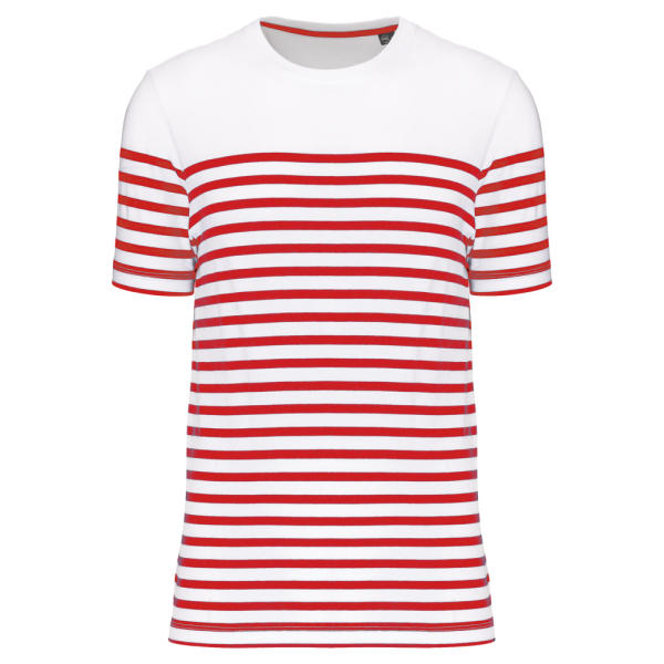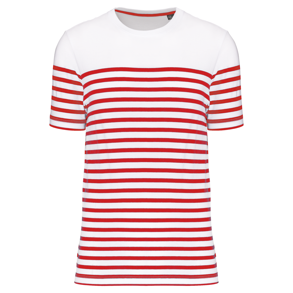 100% katoen. Dit T-shirt werd gemaakt van 100% biologisch gekamd katoen. Rechte snit. Enzymgewassen. Ronde halsopening met 1x1 ribboord. Gebreide strepen. Nektape. Dubbel stiksel aan mouwuiteinden en onderkant. Geen merklabel, voor eenvoudige personalisatie.