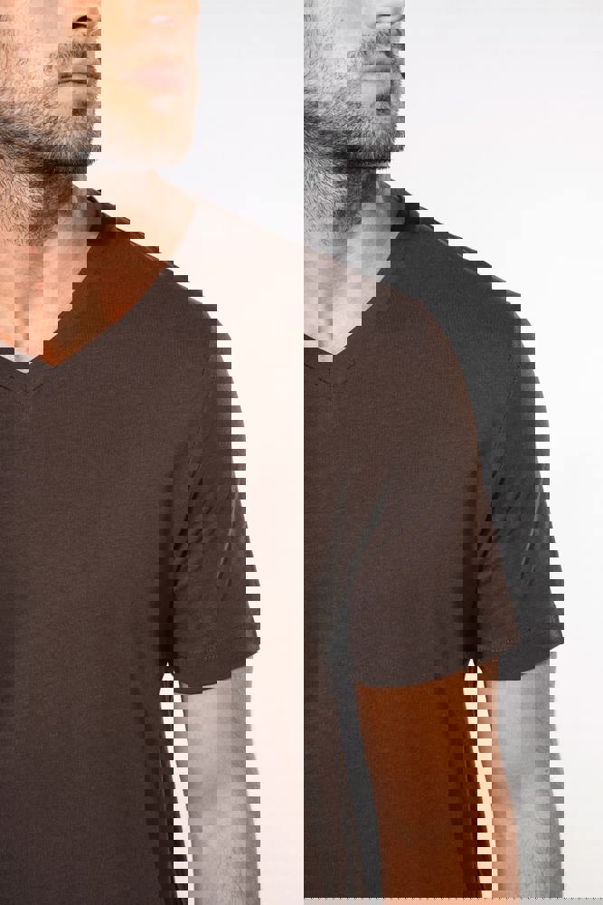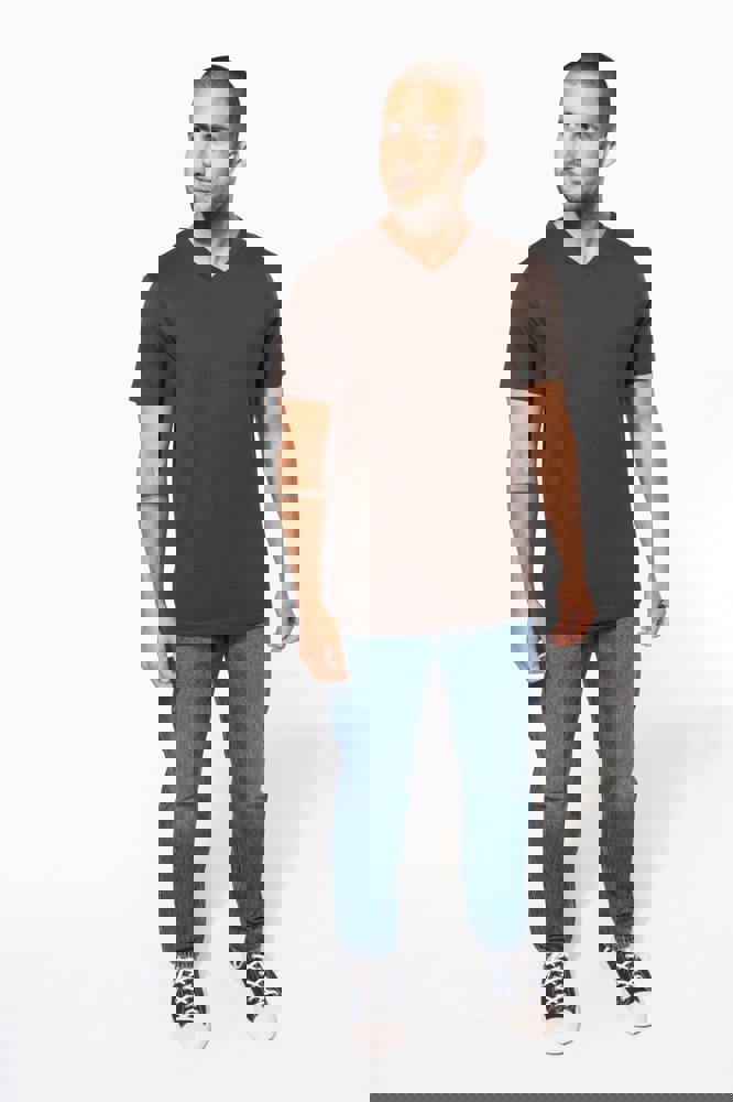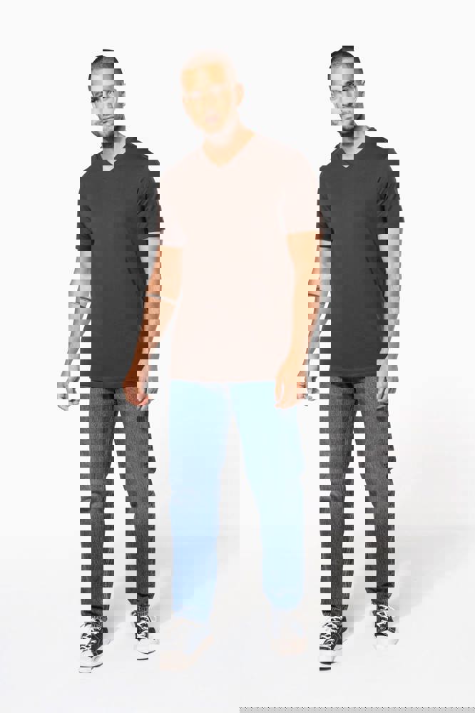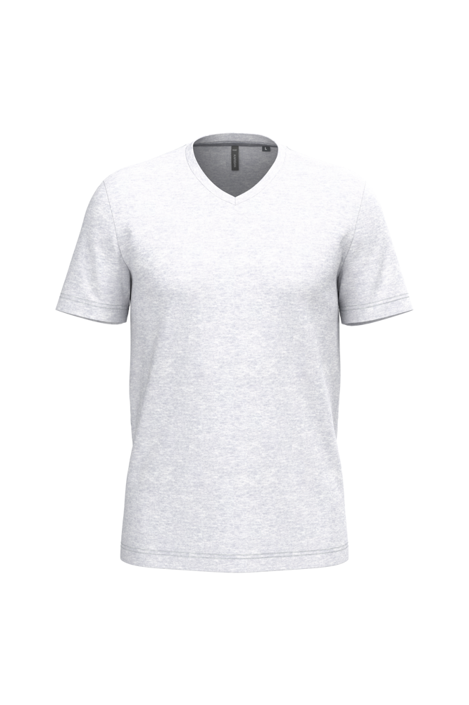 100% enzymbehandeld gekamd katoen. Ash Heather : 98% katoen / 2% viscose. Oxford Grey : 90% katoen / 10% viscose. Nektape (toon-op-toon voor White, Dark Grey voor Oxford Grey en Oxford Grey voor de overige kleuren). Rechte snit. Afwerking met dubbele stiksels.