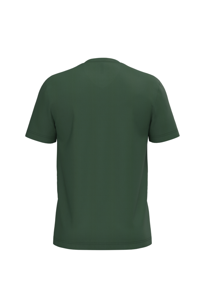 100% enzymbehandeld gekamd katoen. Ash Heather : 98% katoen / 2% viscose. Oxford Grey : 90% katoen / 10% viscose. Nektape (toon-op-toon voor White, Dark Grey voor Oxford Grey en Oxford Grey voor de overige kleuren). Rechte snit. Afwerking met dubbele stiksels.