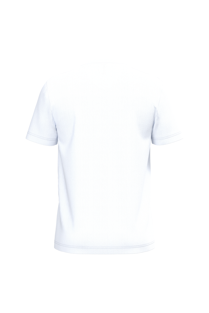 100% enzymbehandeld gekamd katoen. Ash Heather : 98% katoen / 2% viscose. Oxford Grey : 90% katoen / 10% viscose. Nektape (toon-op-toon voor White, Dark Grey voor Oxford Grey en Oxford Grey voor de overige kleuren). Rechte snit. Afwerking met dubbele stiksels.