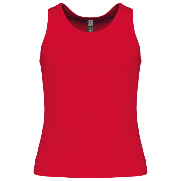 100% katoen. 1x1 rib. Racerback. Afwerking met dubbele stiksels.