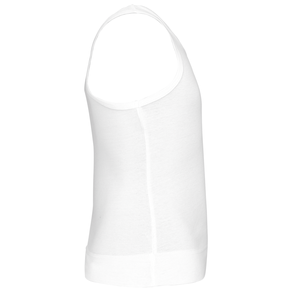 100% katoen. 1x1 rib. Racerback. Afwerking met dubbele stiksels.