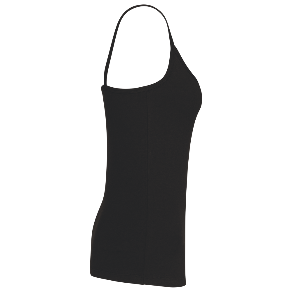 95% katoen / 5% elasthan. (Light Grey Heather : 87% katoen / 9% viscose / 4% elasthan). Gekamt katoen jersey. Dunne schouderbandjes en vrouwelijke pasvorm. Dun biesje aan de kraag en dubbel stiksel onderaan.