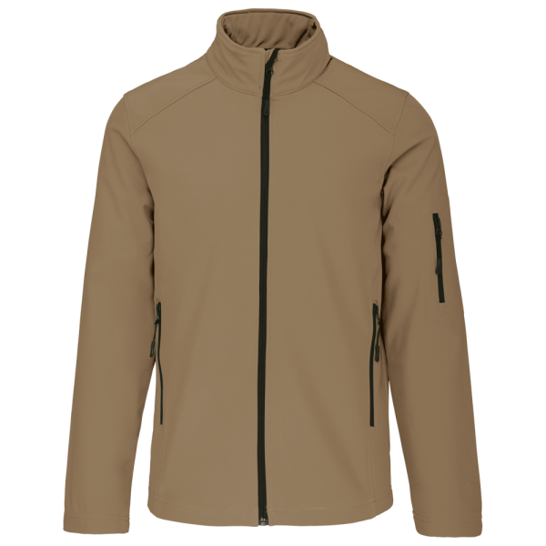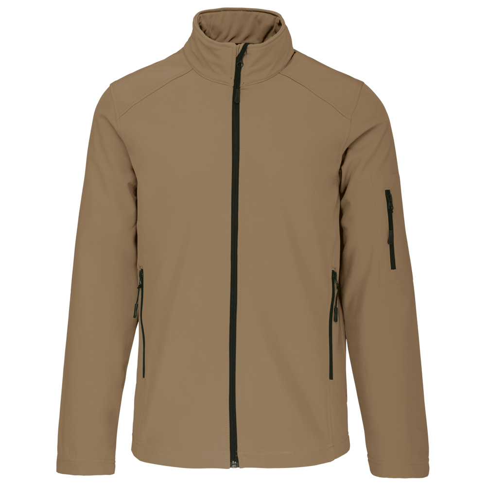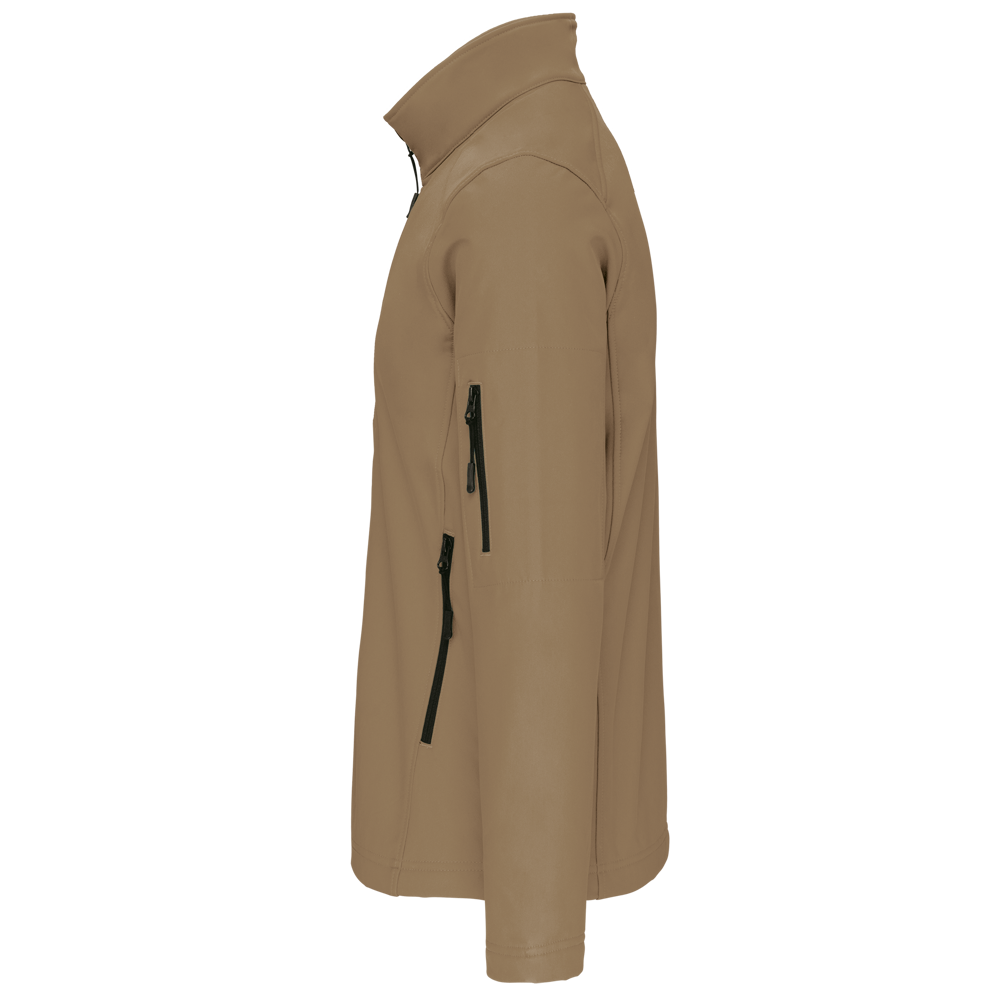 Stof in 3 lagen aan elkaar geklit, ademend 3000 g/m2/24H en 8000 mm waterdicht. Buitenkant: 95% polyester / 5% elasthan. Tussenlaag: ademend membraan. Binnenkant: microfleece. Ritssluiting. Zakken met rits aan de voorkant. 1 zak met rits op de linkermouw.