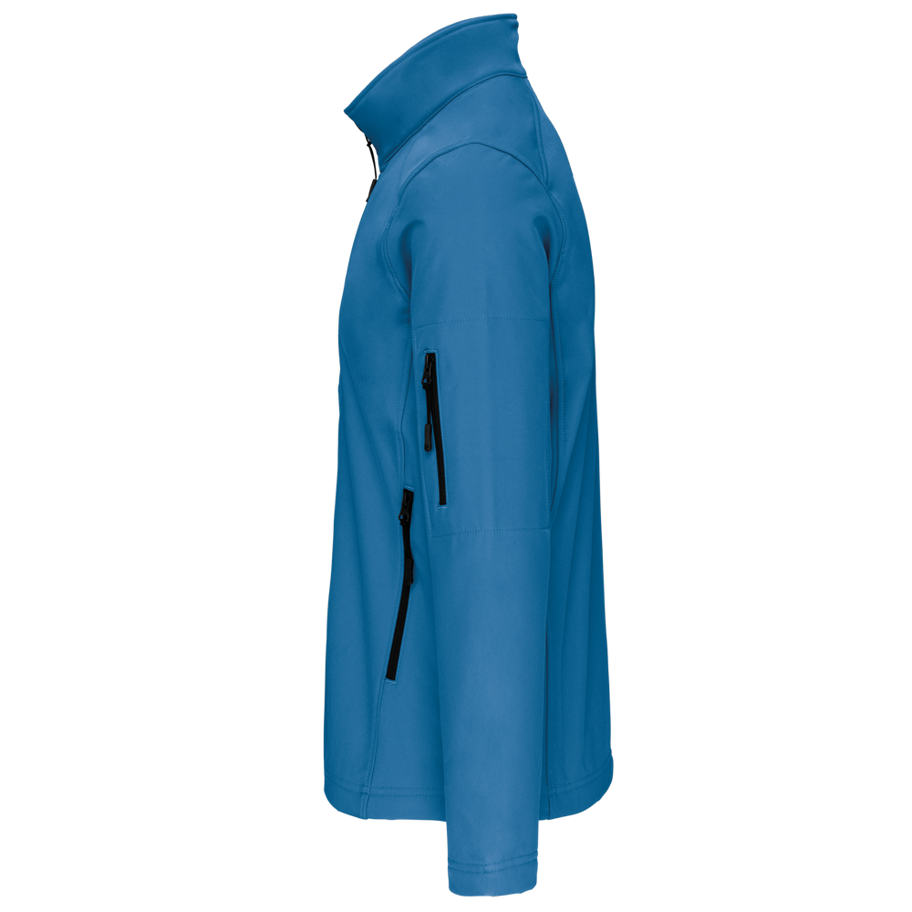 Stof in 3 lagen aan elkaar geklit, ademend 3000 g/m2/24H en 8000 mm waterdicht. Buitenkant: 95% polyester / 5% elasthan. Tussenlaag: ademend membraan. Binnenkant: microfleece. Ritssluiting. Zakken met rits aan de voorkant. 1 zak met rits op de linkermouw.