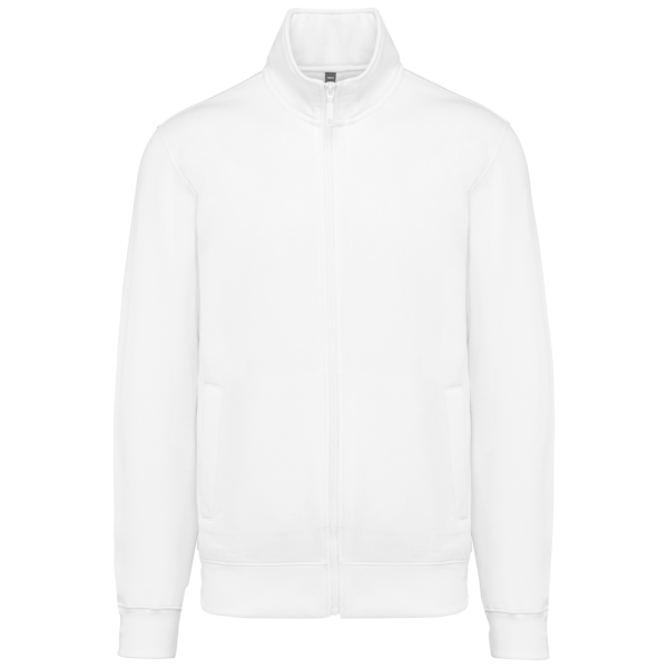 80% katoen / 20% polyester. Buitenoppervlak 100% katoen. LSF-behandeling (Low Shrinkage Fleece: voorgekrompen fleece). Aan de binnenkant geborsteld fleece 3 draden van gekamd katoen. Rechte snit. Rechte mouwen. Opstaande kraag. Ritssluiting in toon op toon plastic. 2 ritszakken en biesjes opzij. Halvemaanvormige afwerking aan de halsopening op de achterkant, voor eenvoudige personalisatie van het merk aan de binnenkant van de kraag. Afwerking van 1x1 ribboord aan de mouwuiteinden en onderaan. Tear-away merklabel.