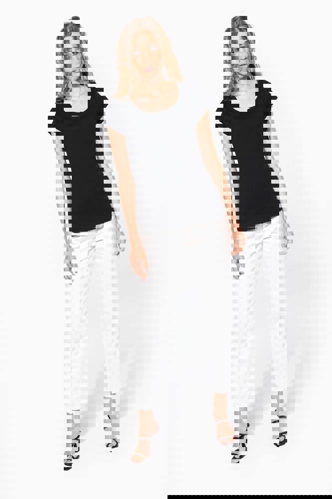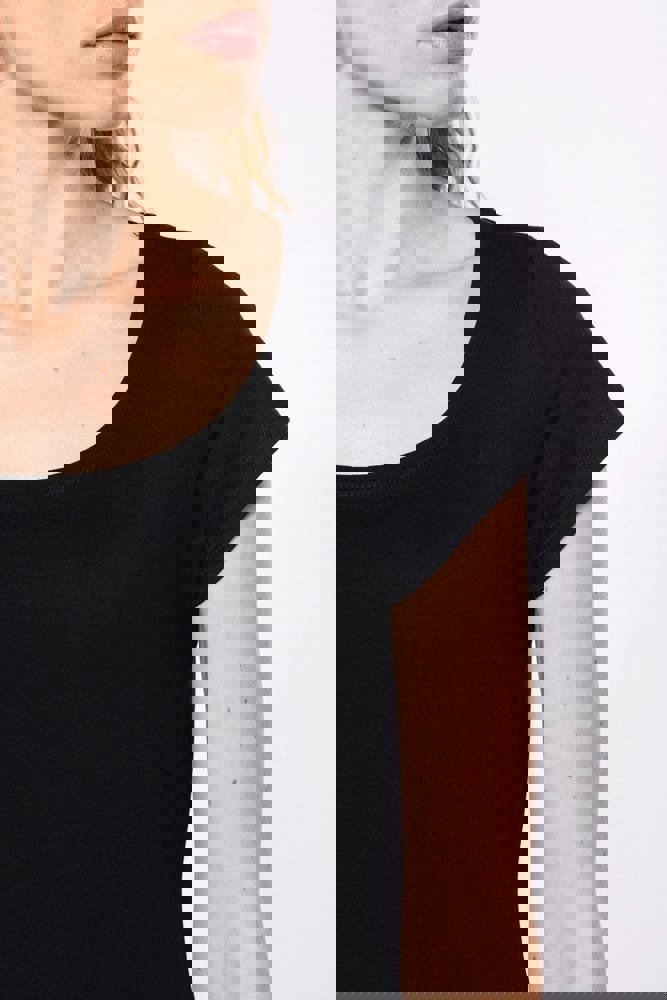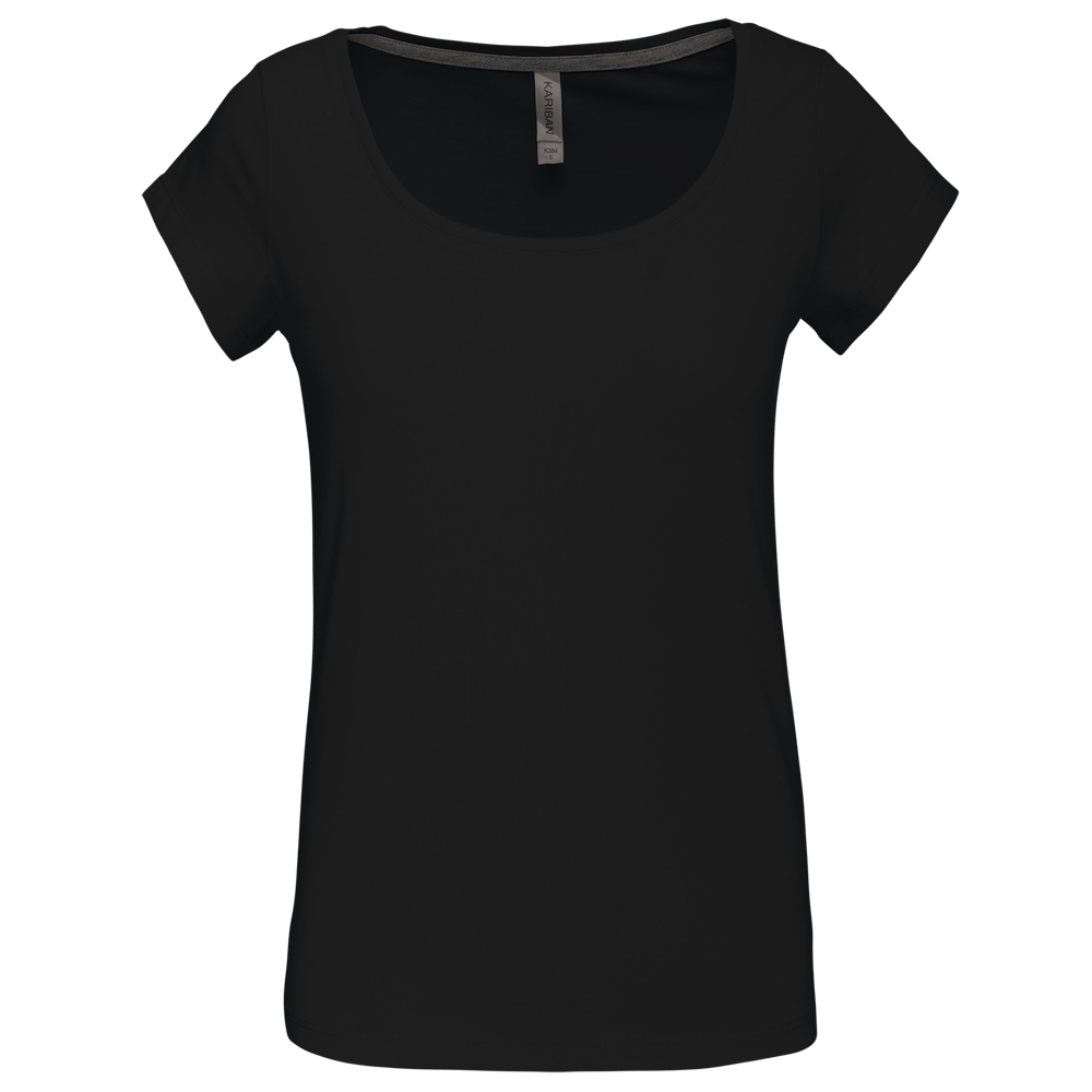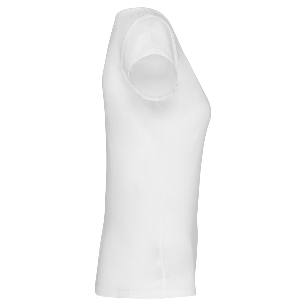 100% katoen. Enzym behandeld gekamd katoen. Wijde ronde boothals. Nektape (toon op toon voor White en Heather Grey voor de overige kleuren). Getailleerde snit. Afwerking met dubbele stiksels.