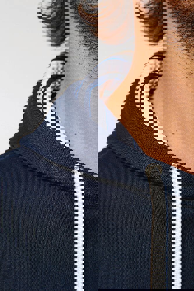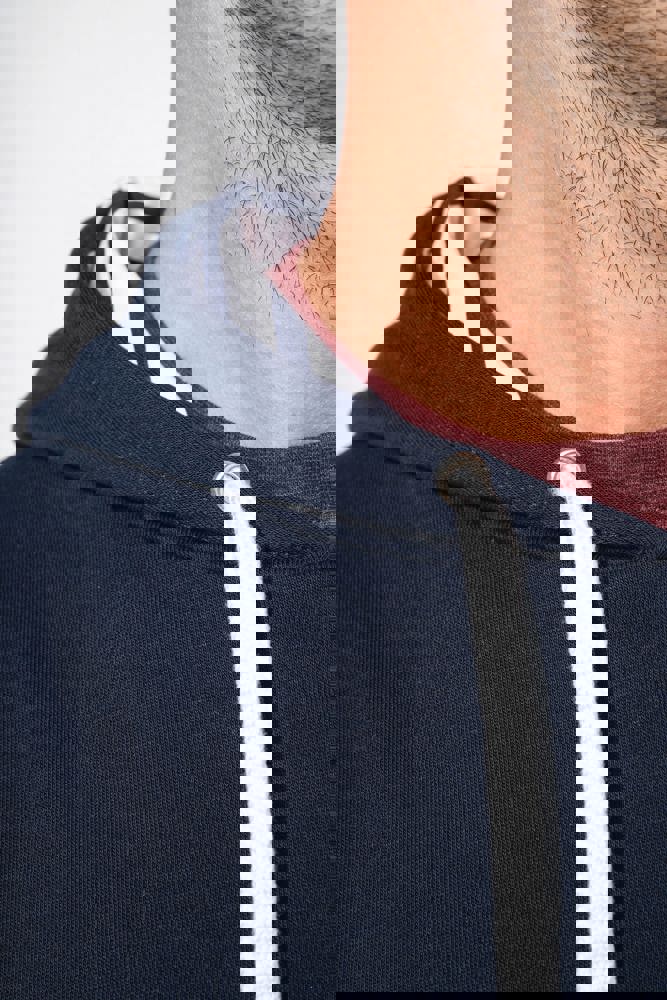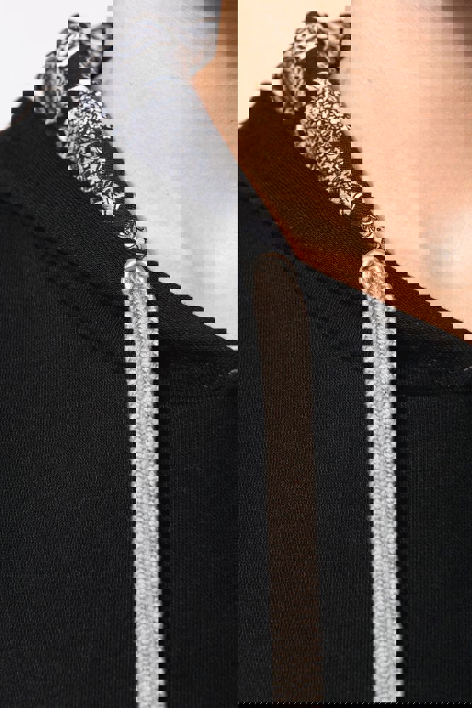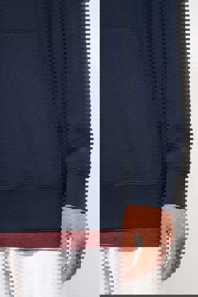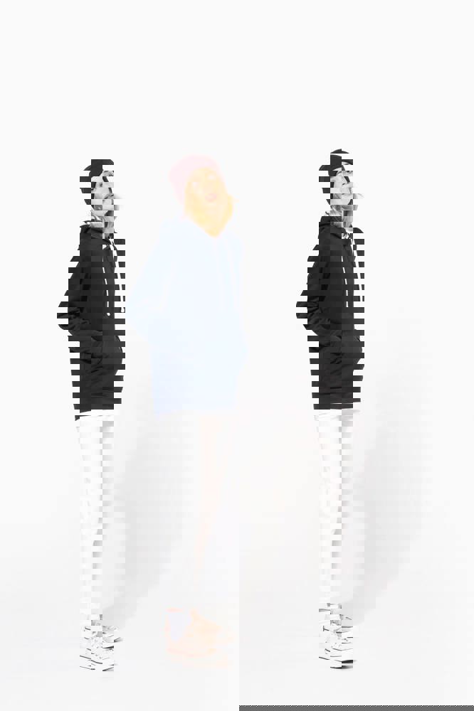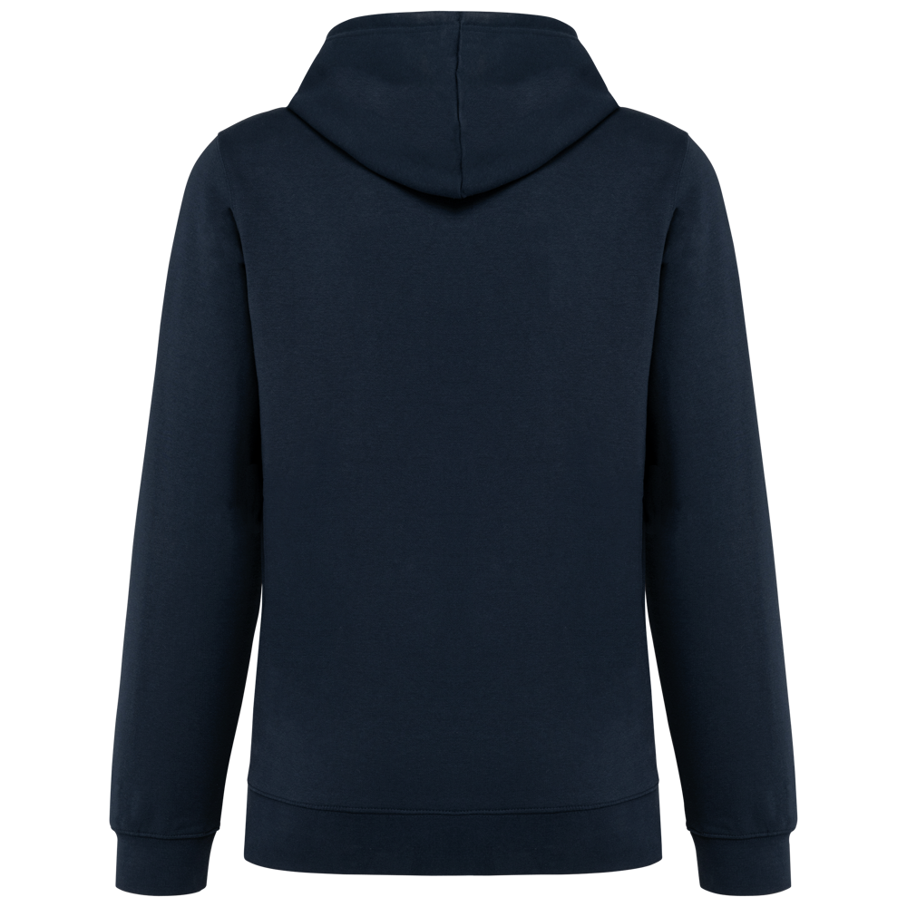 80% katoen / 20% polyester. Gekamd katoen. Aan de binnenkant geborsteld fleece 3 draden. Rechte snit. Rechte mouwen. Kangoeroezakken. Halvemaanvormige halsopening voor eenvoudige personalisatie van het merk aan de binnenkant van de kraag. Afwerkingen van 1x1 ribboord aan de mouwuiteinden en de boord. Gevoerde capuchon met een themastof in bedrukt jerseykatoen en contrasterende aanrijgkoordjes. Tear-away merklabel.