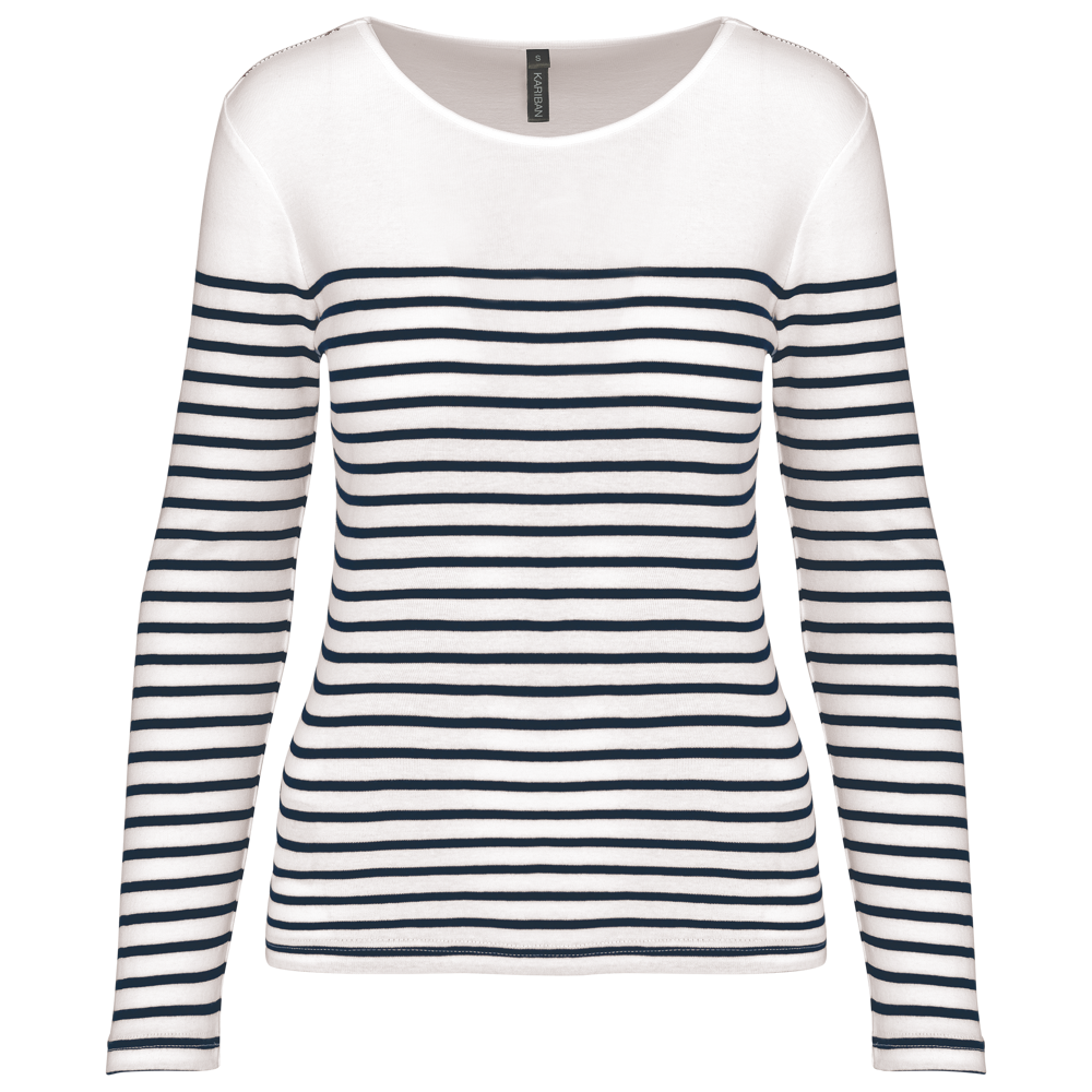 K386 - Gestreept dames-t-shirt lange mouwen