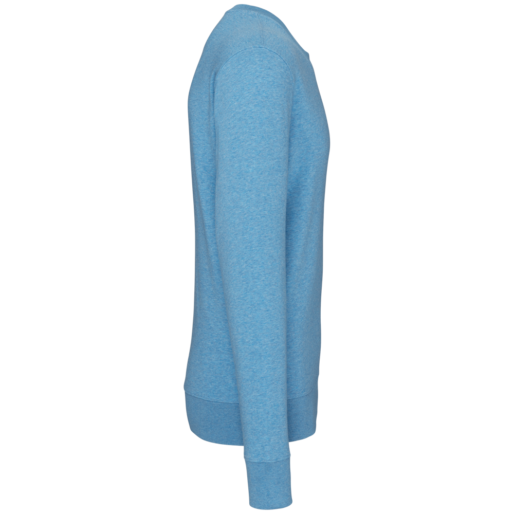 85% katoen / 15% polyester. Gemaakt van 85% biologisch katoen en 15% gerecycled polyester post-consumer. Buitenoppervlak 100% katoen. Geborsteld fleece 3 draden LSF (Low Shrinkage Fleece) aan de binnenkant. Gekamd katoen. Enzymgewassen. Rechte snit. 1x1 ribboord in buisconstructie voor een betere afwerking aan de hals, de mouwuiteinden en de onderkant. Nektape in toon-op-toon jersey en halvemaanvormige afwerking aan de binnenkant van de kraag. Afwerking met dubbel stiksel aan hals, mouwuiteinden en onderkant. Geen merklabel in de kraag, maar enkel een maatlabel voor eenvoudige personalisatie.