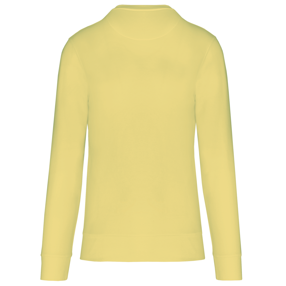 85% katoen / 15% polyester. Gemaakt van 85% biologisch katoen en 15% gerecycled polyester post-consumer. Buitenoppervlak 100% katoen. Geborsteld fleece 3 draden LSF (Low Shrinkage Fleece) aan de binnenkant. Gekamd katoen. Enzymgewassen. Rechte snit. 1x1 ribboord in buisconstructie voor een betere afwerking aan de hals, de mouwuiteinden en de onderkant. Nektape in toon-op-toon jersey en halvemaanvormige afwerking aan de binnenkant van de kraag. Afwerking met dubbel stiksel aan hals, mouwuiteinden en onderkant. Geen merklabel in de kraag, maar enkel een maatlabel voor eenvoudige personalisatie.