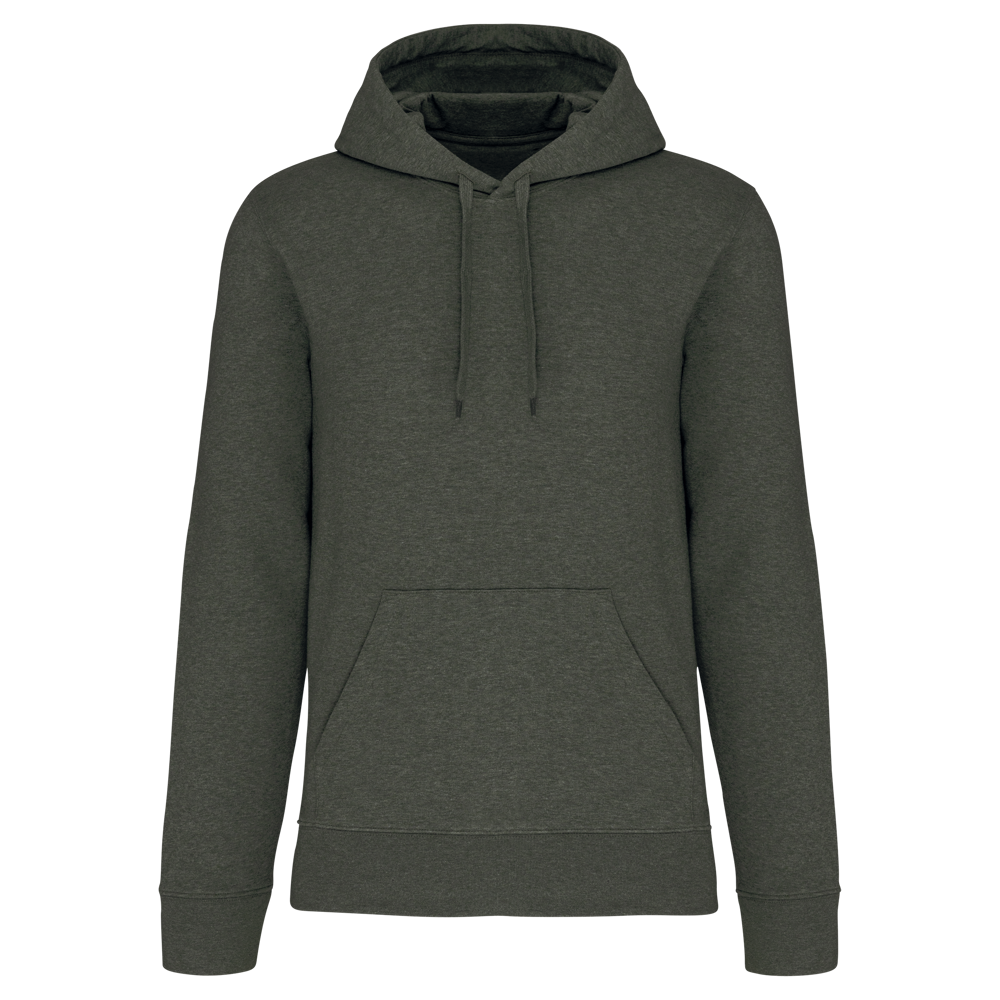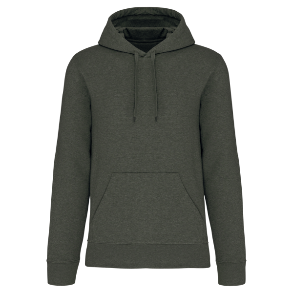 85% katoen / 15% polyester. Gemaakt van 85% biologisch katoen en 15% gerecycled polyester post-consumer. Buitenoppervlak 100% gekamd katoen. Geborstelde fleece 3 draden LSF (Low Shrinkage Fleece) aan de binnenkant. Enzymgewassen. Rechte snit. 1x1 ribboord in buisconstructie voor een betere afwerking aan de mouwuiteinden en de onderkant. Kangoeroezak. Gevoerde capuchon 100% katoen, jerseykatoen 180 g. Nektape in toon op toon jersey en halvemaanvormige afwerking aan de binnenkant van de kraag. Afwerking dubbel stiksel aan de mouwuiteinden, onderkant en hals. Geen merklabel in de kraag, maar enkel een maatlabel voor eenvoudige personalisatie.