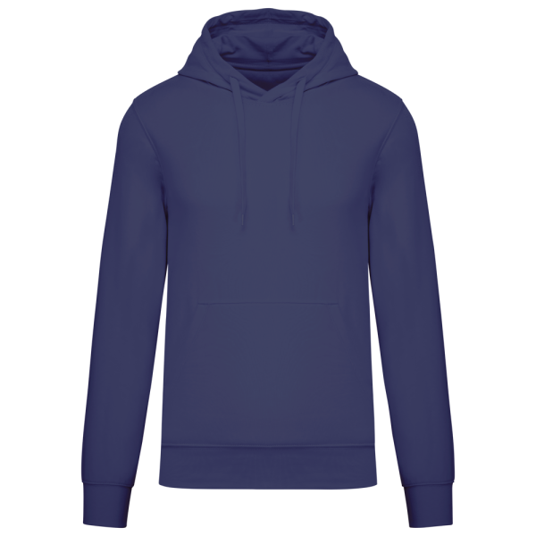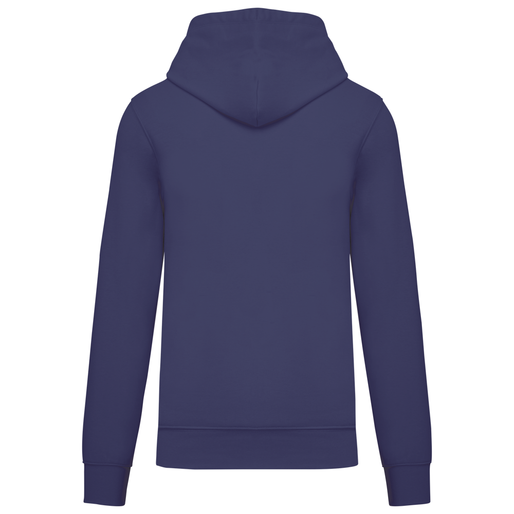 85% katoen / 15% polyester. Gemaakt van 85% biologisch katoen en 15% gerecycled polyester post-consumer. Buitenoppervlak 100% gekamd katoen. Geborstelde fleece 3 draden LSF (Low Shrinkage Fleece) aan de binnenkant. Enzymgewassen. Rechte snit. 1x1 ribboord in buisconstructie voor een betere afwerking aan de mouwuiteinden en de onderkant. Kangoeroezak. Gevoerde capuchon 100% katoen, jerseykatoen 180 g. Nektape in toon op toon jersey en halvemaanvormige afwerking aan de binnenkant van de kraag. Afwerking dubbel stiksel aan de mouwuiteinden, onderkant en hals. Geen merklabel in de kraag, maar enkel een maatlabel voor eenvoudige personalisatie.