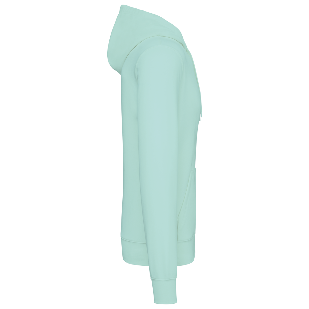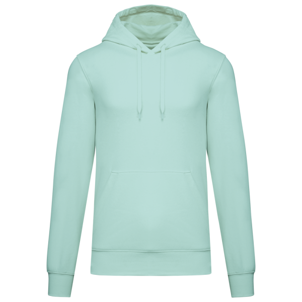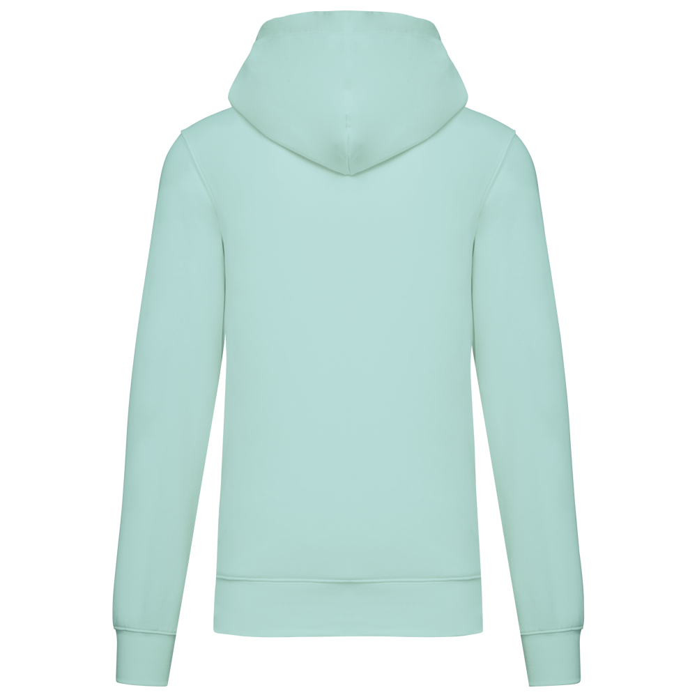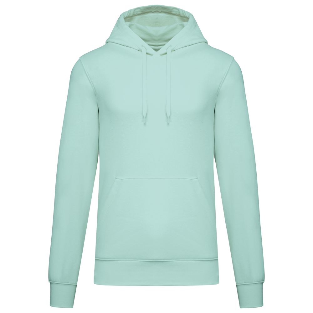 85% katoen / 15% polyester. Gemaakt van 85% biologisch katoen en 15% gerecycled polyester post-consumer. Buitenoppervlak 100% gekamd katoen. Geborstelde fleece 3 draden LSF (Low Shrinkage Fleece) aan de binnenkant. Enzymgewassen. Rechte snit. 1x1 ribboord in buisconstructie voor een betere afwerking aan de mouwuiteinden en de onderkant. Kangoeroezak. Gevoerde capuchon 100% katoen, jerseykatoen 180 g. Nektape in toon op toon jersey en halvemaanvormige afwerking aan de binnenkant van de kraag. Afwerking dubbel stiksel aan de mouwuiteinden, onderkant en hals. Geen merklabel in de kraag, maar enkel een maatlabel voor eenvoudige personalisatie.