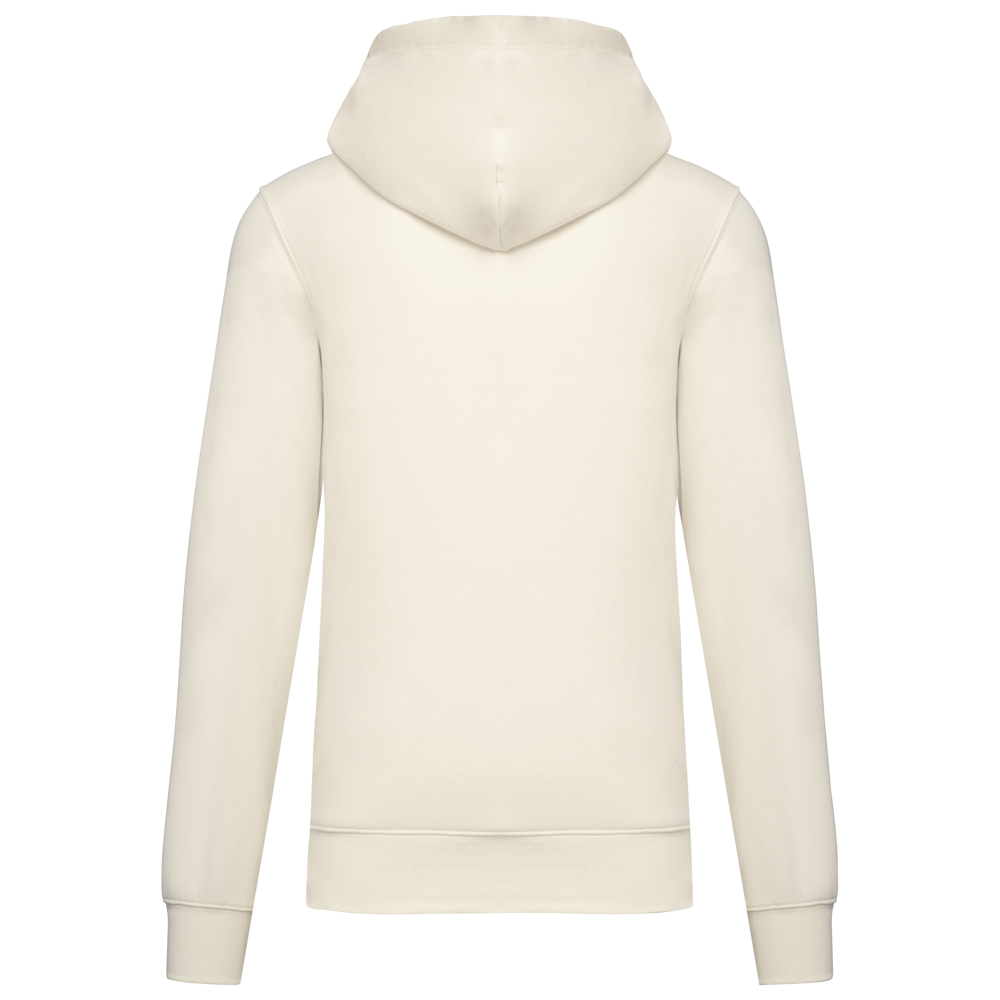 85% katoen / 15% polyester. Gemaakt van 85% biologisch katoen en 15% gerecycled polyester post-consumer. Buitenoppervlak 100% gekamd katoen. Geborstelde fleece 3 draden LSF (Low Shrinkage Fleece) aan de binnenkant. Enzymgewassen. Rechte snit. 1x1 ribboord in buisconstructie voor een betere afwerking aan de mouwuiteinden en de onderkant. Kangoeroezak. Gevoerde capuchon 100% katoen, jerseykatoen 180 g. Nektape in toon op toon jersey en halvemaanvormige afwerking aan de binnenkant van de kraag. Afwerking dubbel stiksel aan de mouwuiteinden, onderkant en hals. Geen merklabel in de kraag, maar enkel een maatlabel voor eenvoudige personalisatie.