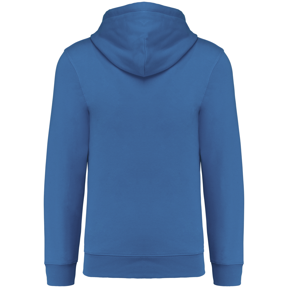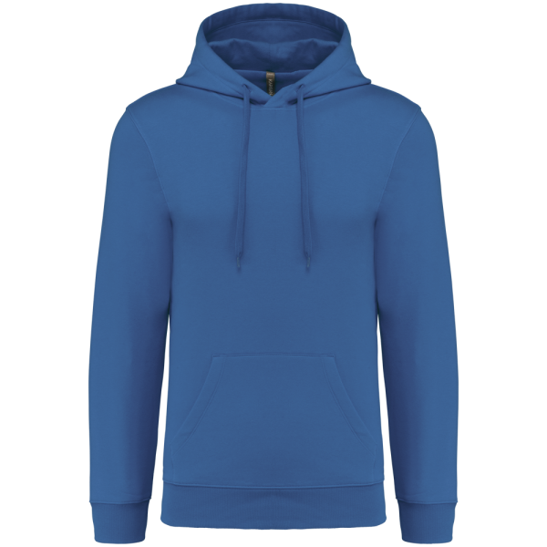 80% katoen / 20% polyester. Geborsteld LSF-fleece 3 draden (Low Shrinkage Fleece), behandeld tegen pluizen. Gemaakt in Portugal. Straight snit. Cut-and-sew-techniek. 1x1 ribboord in buisconstructie voor een betere afwerking aan de mouwuiteinden en de onderkant. Kangoeroezak. Gevoerde capuchon in 100% jerseykatoen met platte aanrijgkoordjes die door knoopsgaten lopen. Halvemaanvormige afwerking aan de binnenkant van de kraag. Dubbel stiksel aan de mouwuiteinden en de onderkant. Geen merklabel, maar een maatlabel in de kraag voor eenvoudige personalisatie.