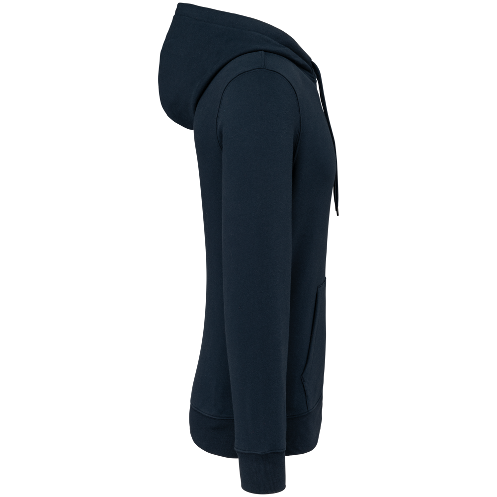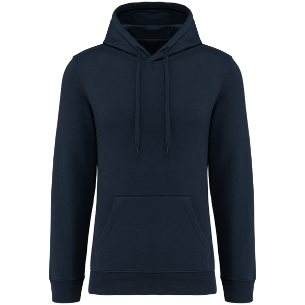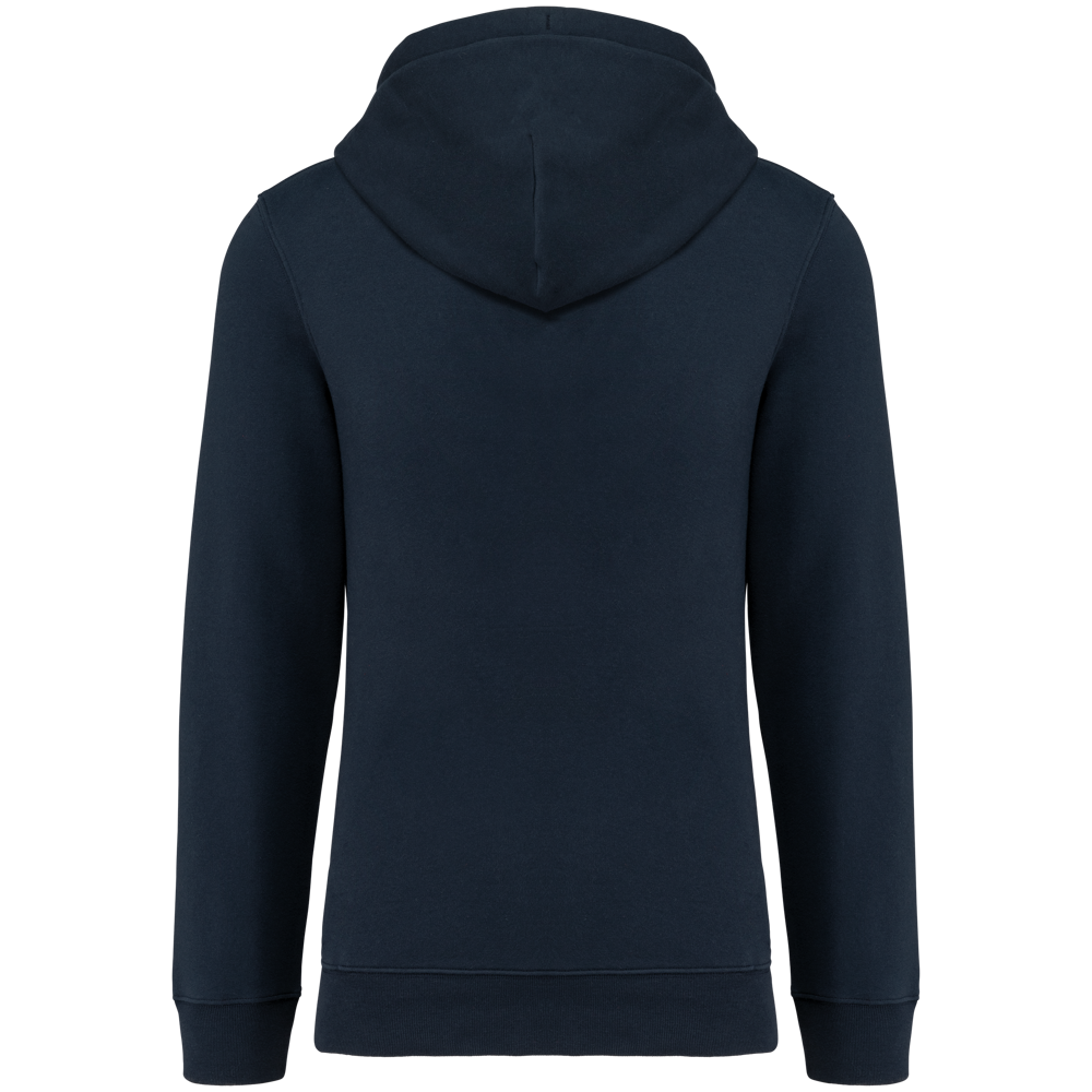 80% katoen / 20% polyester. Geborsteld LSF-fleece 3 draden (Low Shrinkage Fleece), behandeld tegen pluizen. Gemaakt in Portugal. Straight snit. Cut-and-sew-techniek. 1x1 ribboord in buisconstructie voor een betere afwerking aan de mouwuiteinden en de onderkant. Kangoeroezak. Gevoerde capuchon in 100% jerseykatoen met platte aanrijgkoordjes die door knoopsgaten lopen. Halvemaanvormige afwerking aan de binnenkant van de kraag. Dubbel stiksel aan de mouwuiteinden en de onderkant. Geen merklabel, maar een maatlabel in de kraag voor eenvoudige personalisatie.