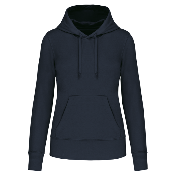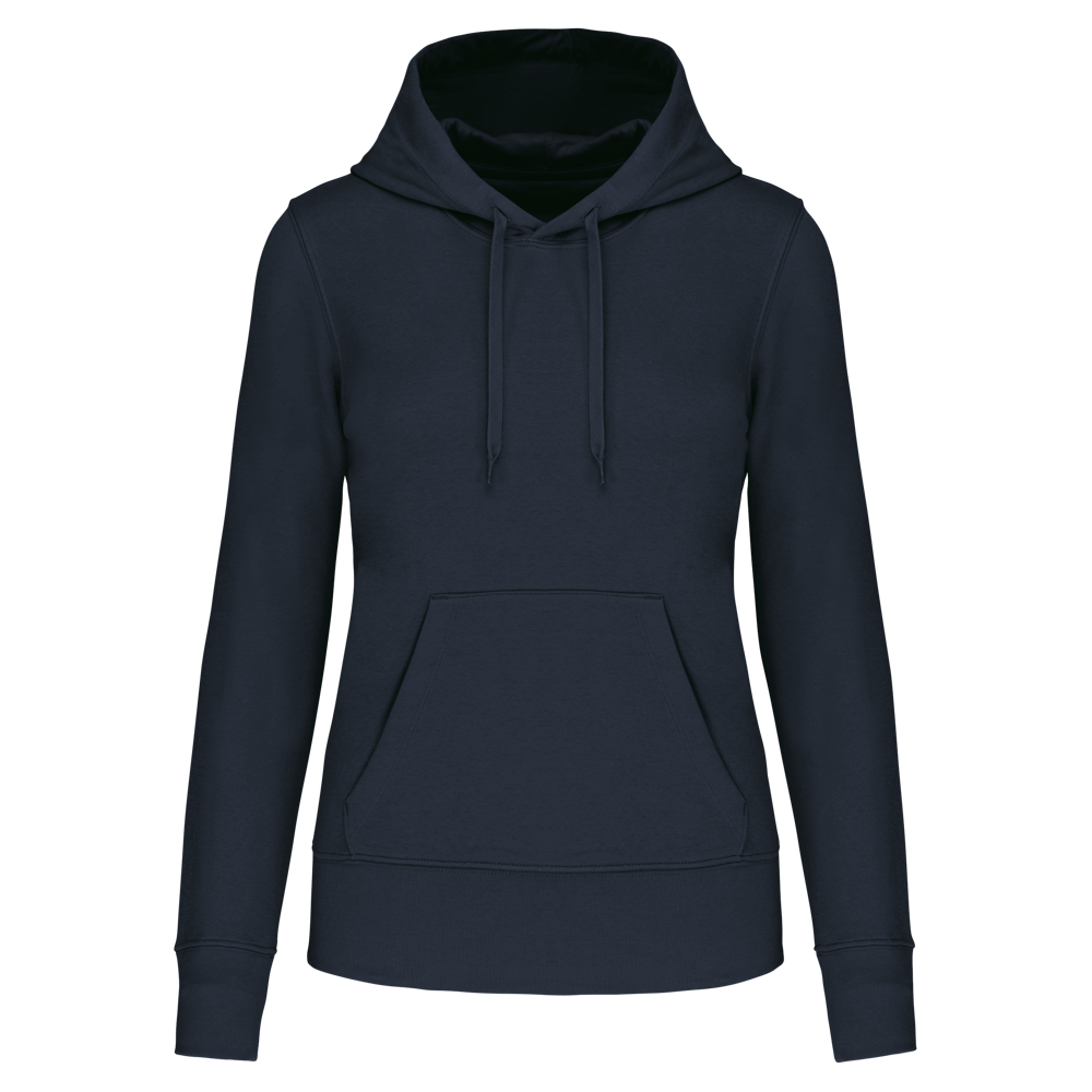 85% katoen / 15% polyester. Gemaakt van 85% biologisch katoen en 15% gerecycled polyester post-consumer. Buitenoppervlak 100% katoen. Geborsteld fleece 3 draden LSF (Low Shrinkage Fleece) aan de binnenkant. Enzymgewassen. Gekamd katoen. Rechte snit. 1x1 ribboord in buisconstructie voor een betere afwerking aan de mouwuiteinden en de onderkant. Kangoeroezak. Gevoerde capuchon 100% katoen, jerseykatoen 180 g. Nektape in toon-op-toon jersey en halvemaanvormige afwerking aan de binnenkant van de kraag. Afwerking met dubbel stiksel aan de mouwuiteinden, de onderkant en de hals. Geen merklabel in de kraag, maar enkel een maatlabel voor eenvoudige personalisatie.