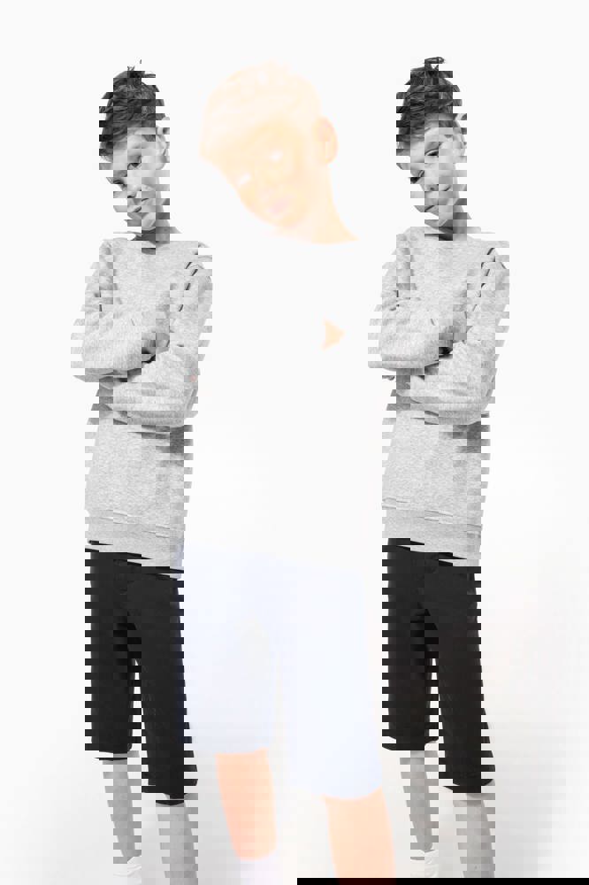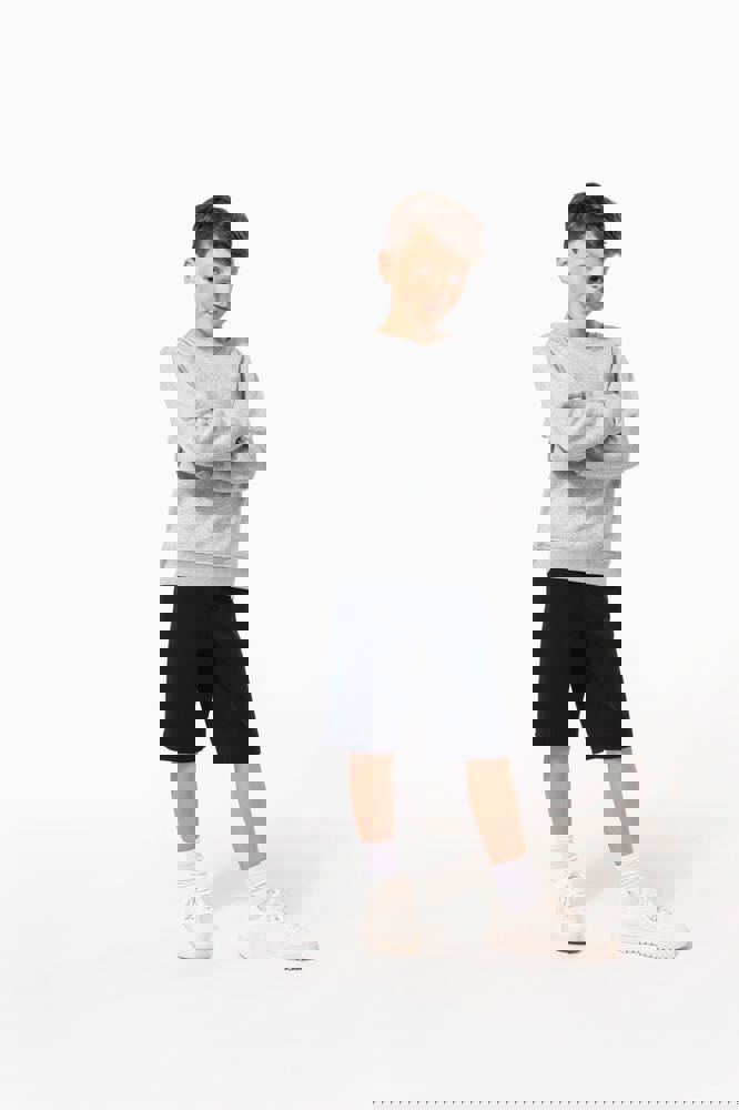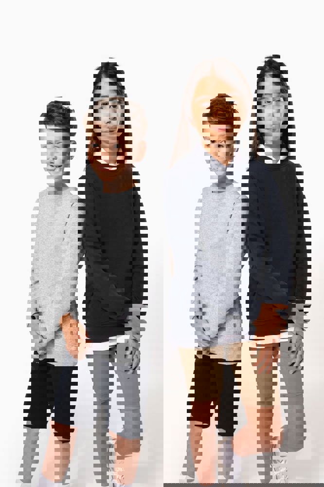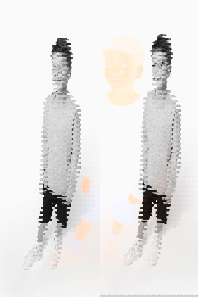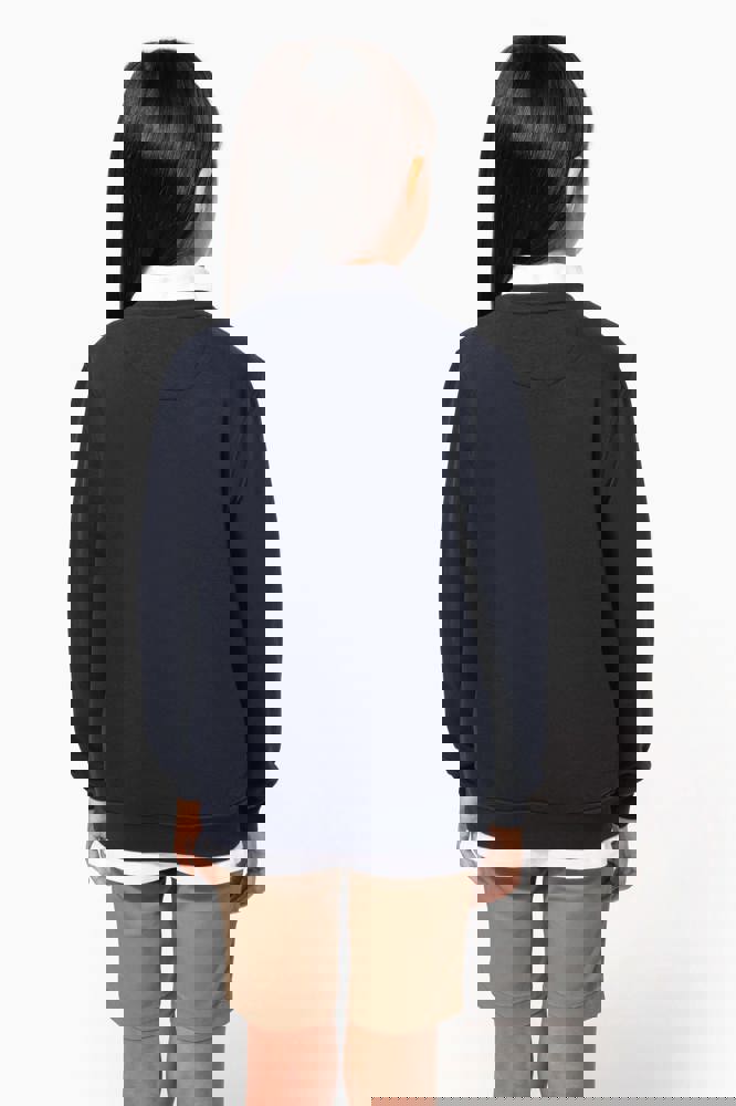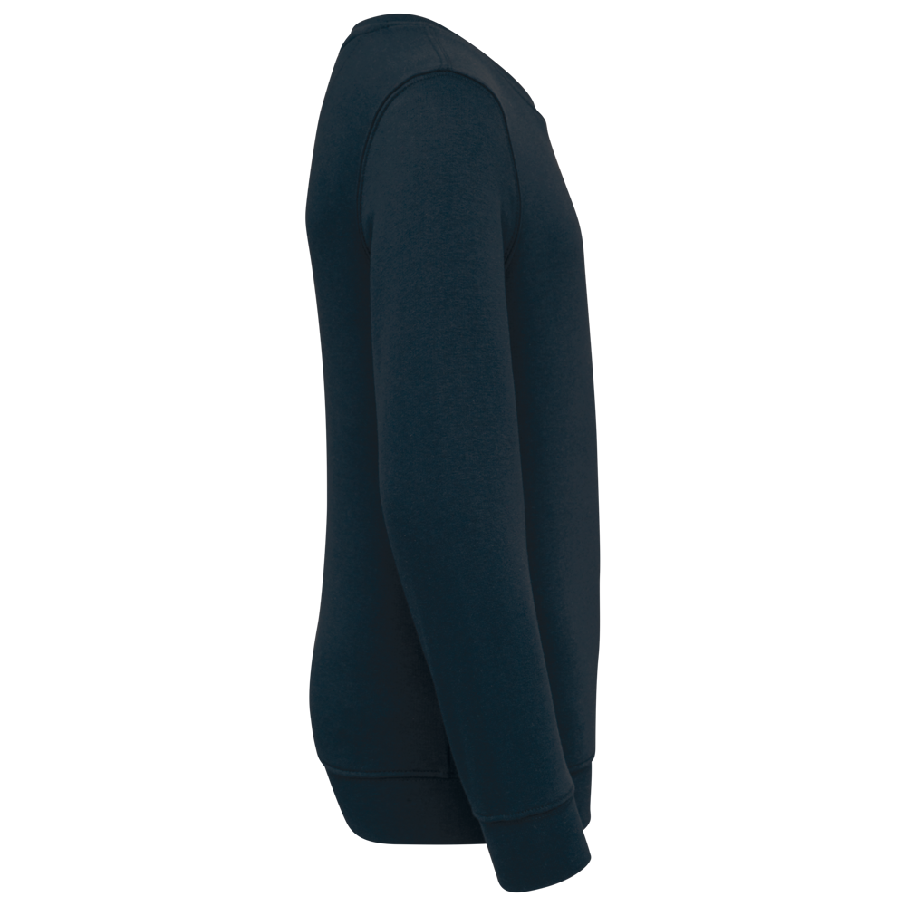 80% katoen / 20% polyester. Gekamd katoen. 3-laags LSF (Low Shrinkage Fleece) geborsteld fleece met behandeling tegen pluizen. Gemaakt in Portugal. Rechte snit. Hals, mouwuiteinden en boord in 1x1 ribstof. Afgewerkt met dubbel stiksel op schouders, armsgaten, mouwuiteinden en boord. Nektape in bijpassende jersey in de kraag. Halvemaanvormig inzetsel achteraan. Naamlabel in de kleding. Geen merklabel in de halsopening, enkel een maatlabel voor eenvoudige personalisatie.