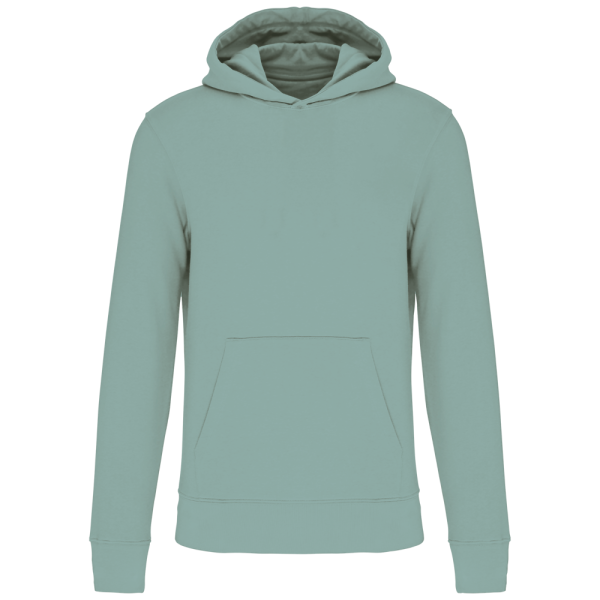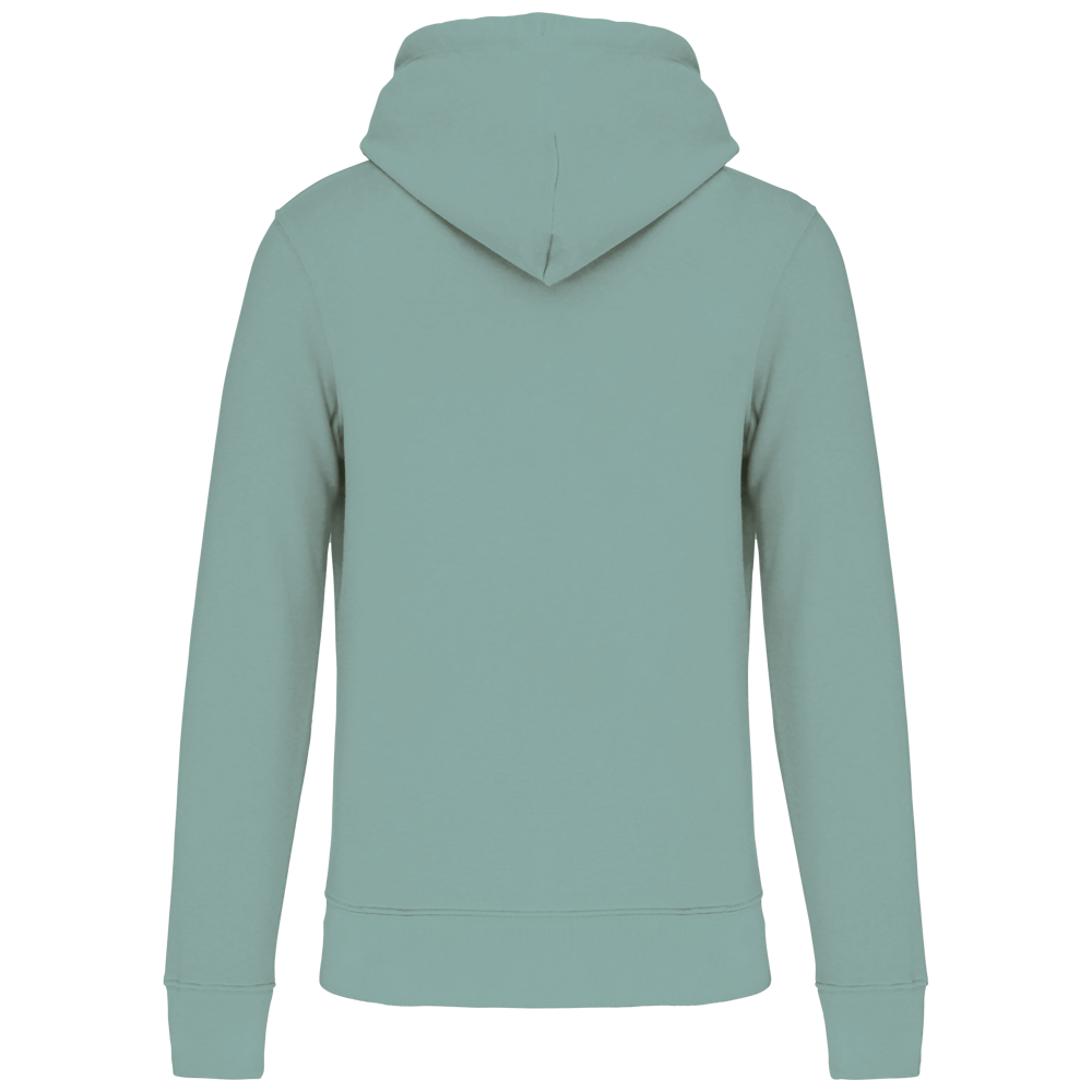 85% katoen / 15% polyester. Gemaakt van 85% biologisch katoen en 15% gerecycled polyester post-consumer. Buitenoppervlak 100% katoen. Geborsteld fleece 3 draden LSF (Low Shrinkage Fleece) aan de binnenkant. Gekamd katoen. Enzymgewassen. Rechte snit. 1x1 ribboord in buisconstructie voor een betere afwerking aan de mouwuiteinden en de onderkant. Kangoeroezak. Gevoerde capuchon 100% katoen, jerseykatoen 180 g. Nektape in toon-op-toon jersey en halvemaanvormige afwerking aan de binnenkant van de kraag. Afwerking met dubbel stiksel aan mouwuiteinden en onderkant. Geen merklabel in de kraag, maar enkel een maatlabel voor eenvoudige personalisatie.