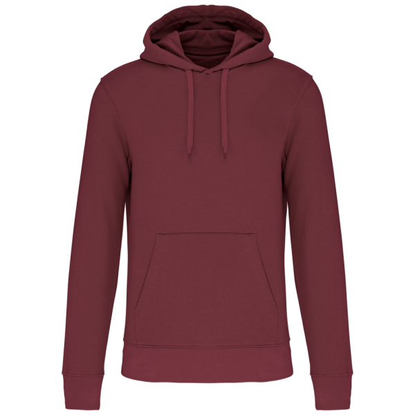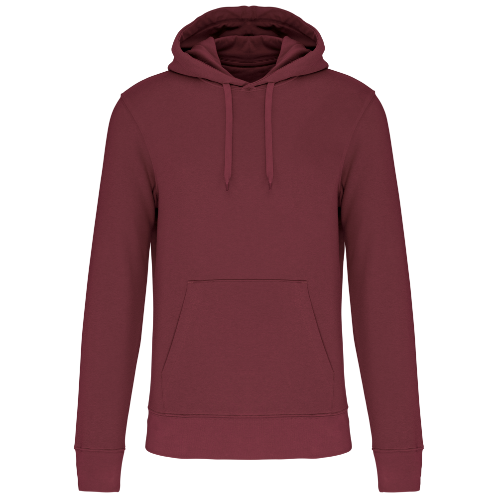 85% katoen / 15% polyester. Gemaakt van 85% biologisch katoen en 15% gerecycled polyester post-consumer. Buitenoppervlak 100% katoen. Geborsteld fleece 3 draden LSF (Low Shrinkage Fleece) aan de binnenkant. Gekamd katoen. Enzymgewassen. Rechte snit. 1x1 ribboord in buisconstructie voor een betere afwerking aan de mouwuiteinden en de onderkant. Kangoeroezak. Gevoerde capuchon 100% katoen, jerseykatoen 180 g. Nektape in toon-op-toon jersey en halvemaanvormige afwerking aan de binnenkant van de kraag. Afwerking met dubbel stiksel aan mouwuiteinden en onderkant. Geen merklabel in de kraag, maar enkel een maatlabel voor eenvoudige personalisatie.
