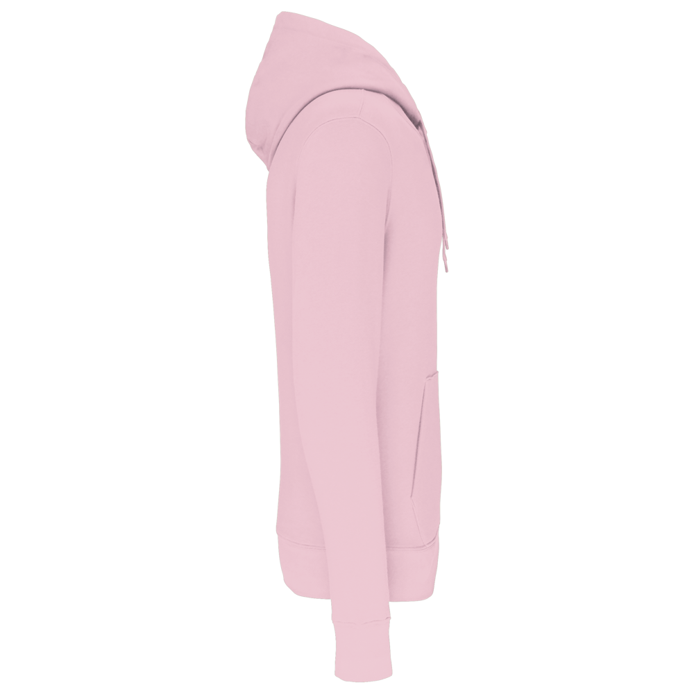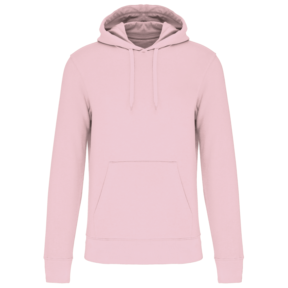 85% katoen / 15% polyester. Gemaakt van 85% biologisch katoen en 15% gerecycled polyester post-consumer. Buitenoppervlak 100% katoen. Geborsteld fleece 3 draden LSF (Low Shrinkage Fleece) aan de binnenkant. Gekamd katoen. Enzymgewassen. Rechte snit. 1x1 ribboord in buisconstructie voor een betere afwerking aan de mouwuiteinden en de onderkant. Kangoeroezak. Gevoerde capuchon 100% katoen, jerseykatoen 180 g. Nektape in toon-op-toon jersey en halvemaanvormige afwerking aan de binnenkant van de kraag. Afwerking met dubbel stiksel aan mouwuiteinden en onderkant. Geen merklabel in de kraag, maar enkel een maatlabel voor eenvoudige personalisatie.