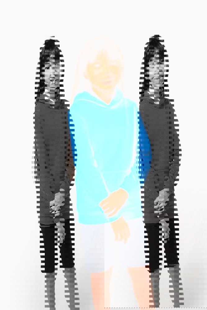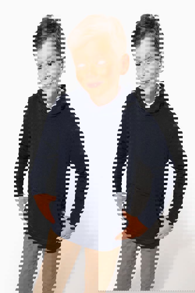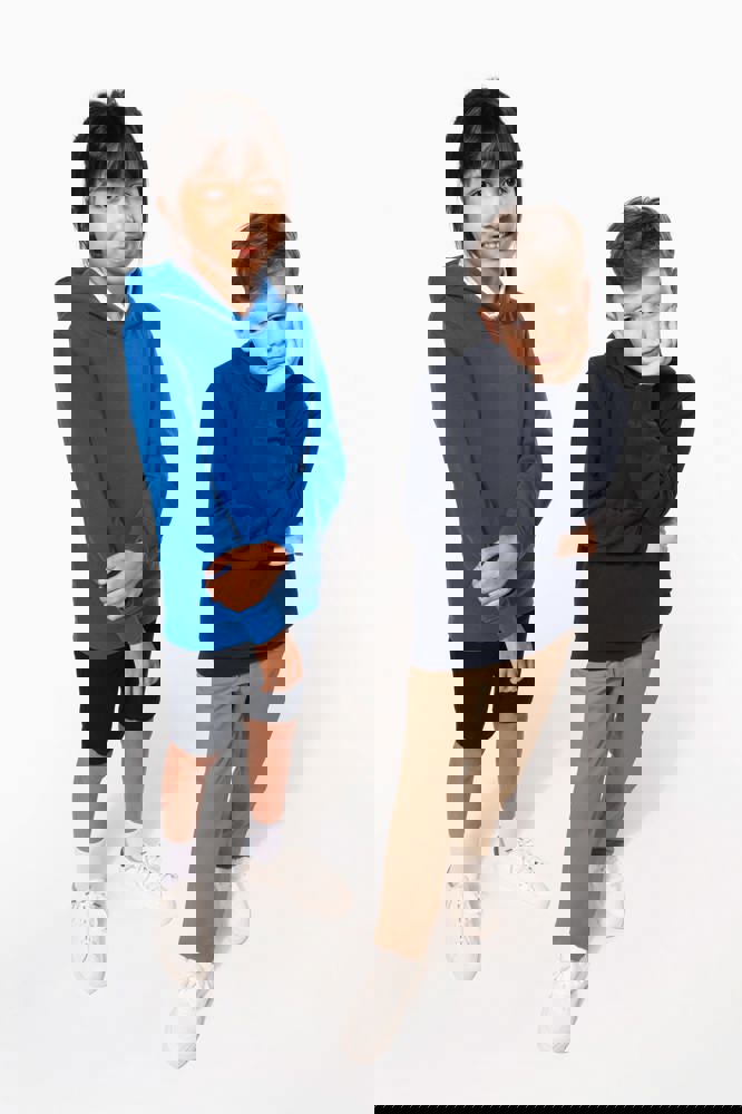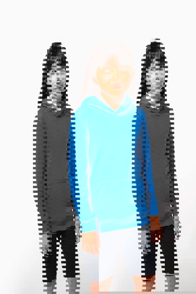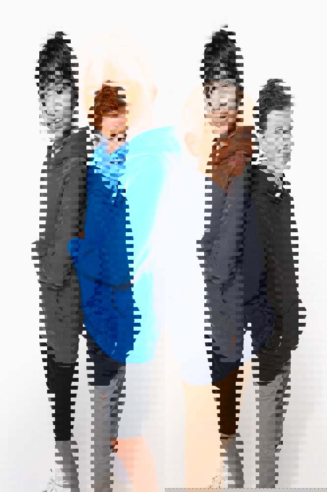 80% katoen / 20% polyester. Gekamd katoen. 3-laags LSF (Low Shrinkage Fleece) geborsteld fleece met behandeling tegen pluizen. Gemaakt in Portugal. Rechte snit. 1x1 ribboord aan de mouwuiteinden en de boord onderaan. Capuchon gevoerd met jerseykatoen. Dubbel stiksel op schouders, armsgaten, mouwuiteinden en boord. Nektape in bijpassende jersey in de kraag. Kangoeroezak. Halvemaanvormig inzetsel achteraan. Naamlabel in de kleding. Geen merklabel in de halsopening, enkel een maatlabel voor eenvoudige personalisatie.