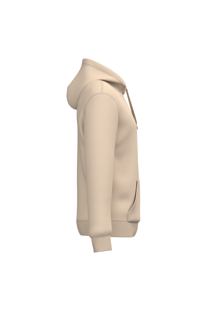 50% ringgesponnen katoen / 50% gerecycled polyester post-consumer. Geborsteld fleece aan de binnenkant. Straight snit. Cut-and-sew-techniek. 2x1 ribboord in buisconstructie voor een betere afwerking aan de hals, de mouwuiteinden en de onderkant. Kangoeroezak. Gevoerde capuchon in jersey-polykatoen met platte aanrijgkoordjes. Ton-sur-ton nektape in jersey in de kraag. Geen merklabel in de kraag, maar enkel een maatlabel voor eenvoudige personalisatie.