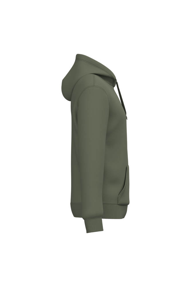 50% ringgesponnen katoen / 50% gerecycled polyester post-consumer. Geborsteld fleece aan de binnenkant. Straight snit. Cut-and-sew-techniek. 2x1 ribboord in buisconstructie voor een betere afwerking aan de hals, de mouwuiteinden en de onderkant. Kangoeroezak. Gevoerde capuchon in jersey-polykatoen met platte aanrijgkoordjes. Ton-sur-ton nektape in jersey in de kraag. Geen merklabel in de kraag, maar enkel een maatlabel voor eenvoudige personalisatie.