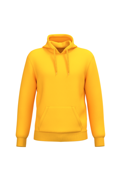 50% ringgesponnen katoen / 50% gerecycled polyester post-consumer. Geborsteld fleece aan de binnenkant. Straight snit. Cut-and-sew-techniek. 2x1 ribboord in buisconstructie voor een betere afwerking aan de hals, de mouwuiteinden en de onderkant. Kangoeroezak. Gevoerde capuchon in jersey-polykatoen met platte aanrijgkoordjes. Ton-sur-ton nektape in jersey in de kraag. Geen merklabel in de kraag, maar enkel een maatlabel voor eenvoudige personalisatie.