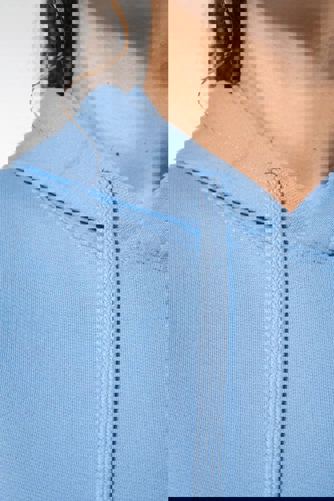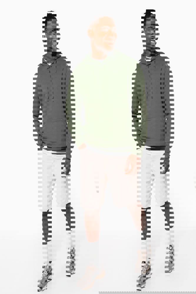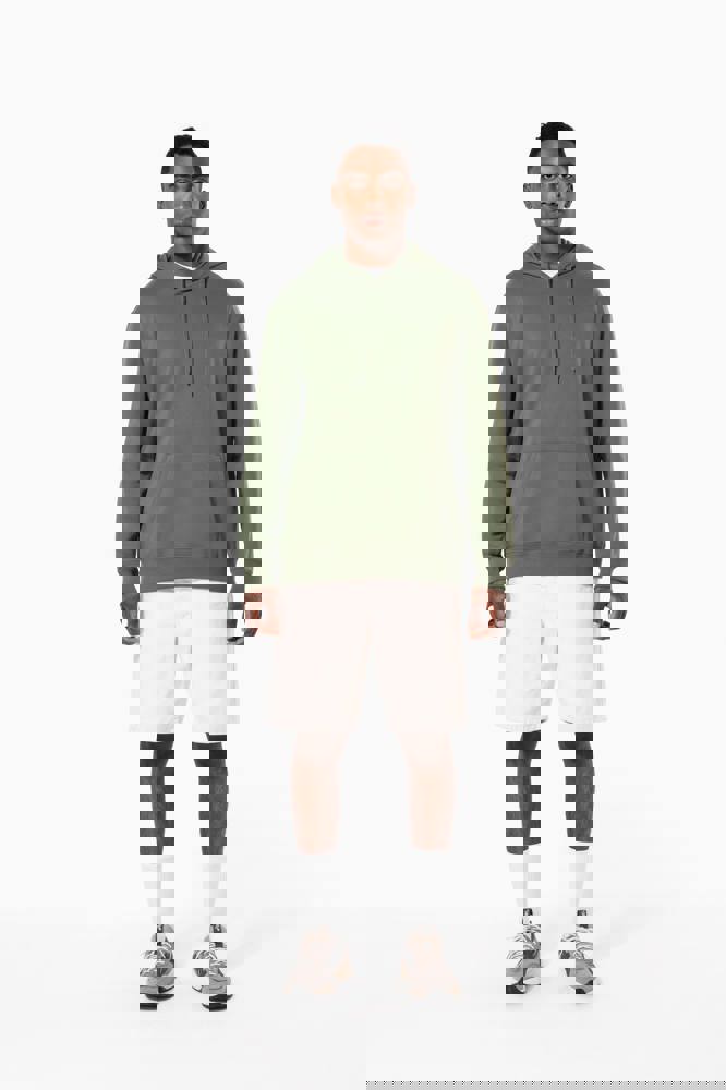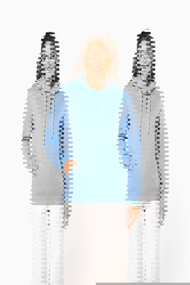 50% ringgesponnen katoen / 50% gerecycled polyester post-consumer. Geborsteld fleece aan de binnenkant. Straight snit. Cut-and-sew-techniek. 2x1 ribboord in buisconstructie voor een betere afwerking aan de hals, de mouwuiteinden en de onderkant. Kangoeroezak. Gevoerde capuchon in jersey-polykatoen met platte aanrijgkoordjes. Ton-sur-ton nektape in jersey in de kraag. Geen merklabel in de kraag, maar enkel een maatlabel voor eenvoudige personalisatie.