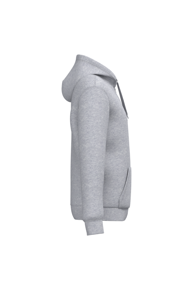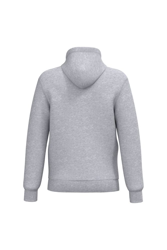 50% ringgesponnen katoen / 50% gerecycled polyester post-consumer. Geborsteld fleece aan de binnenkant. Straight snit. Cut-and-sew-techniek. 2x1 ribboord in buisconstructie voor een betere afwerking aan de hals, de mouwuiteinden en de onderkant. Kangoeroezak. Ritssluiting in nylon. Gevoerde capuchon in jersey-polykatoen met platte aanrijgkoordjes. Toon-op-toon nektape in jersey in de kraag. Geen merklabel in de kraag, maar enkel een maatlabel voor eenvoudige personalisatie.